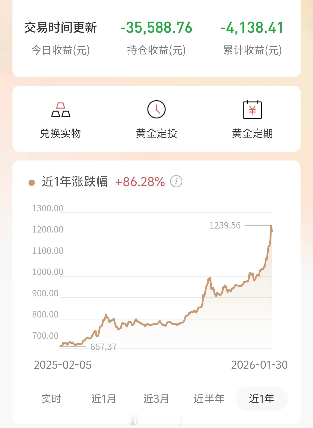 黄金白银暴跌投资者发声 亏麻了亏麻了,算上收益损失八万,能咋办,等风来呗。大涨之后必有大跌,之前我都卖的差不多了,后来又补的仓,总觉得还会有高位,结果失败了认赔呗。长期拿着吧,爱咋咋地,不然还能咋办,我先哭一会。