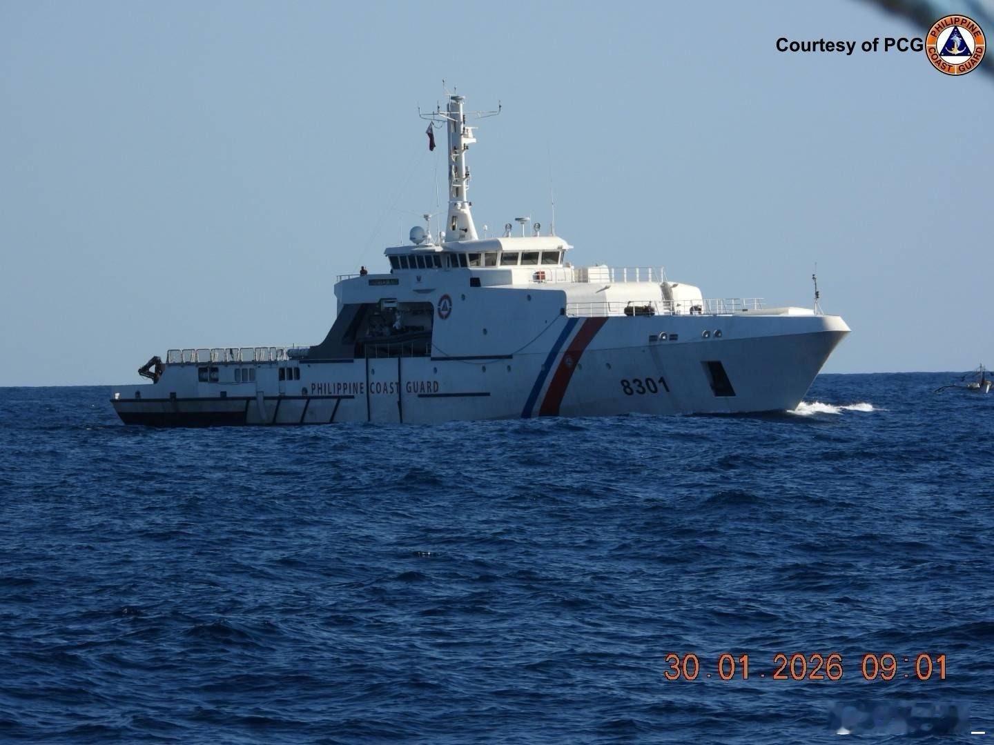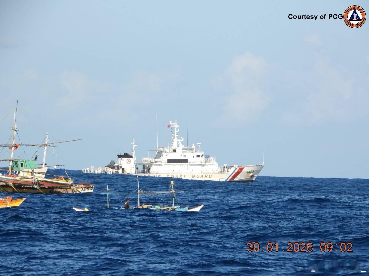菲律宾海警8301舰、4408艇等昨天在吕宋岛以西海域给菲渔船提供补给。中国海警3105舰在现场监控。南海态势