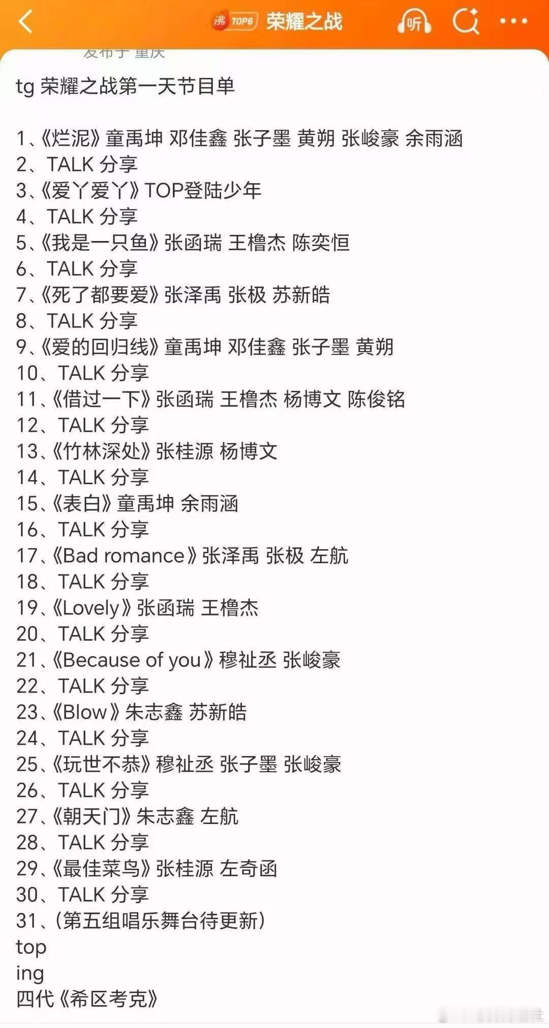 我是一只鱼第四 blow第五 死了都要爱第六 第一《爱丫爱丫》TOP登陆少年第二