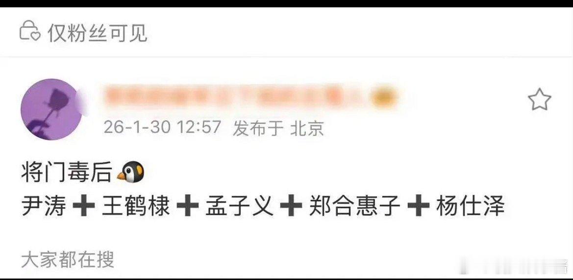 王鹤棣、孟子义将门毒后这个阵容必扑吗