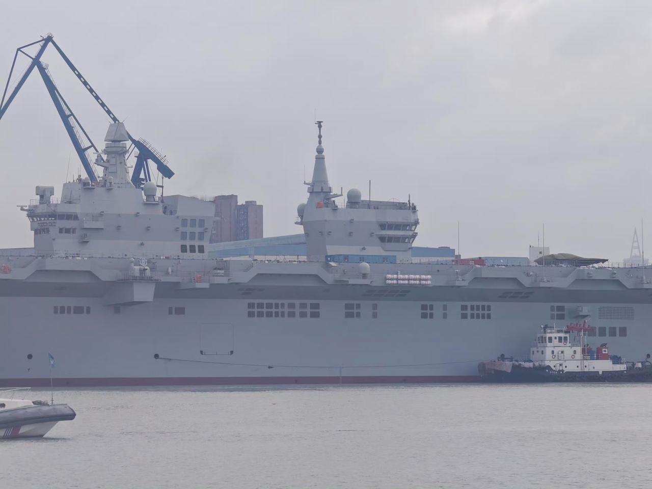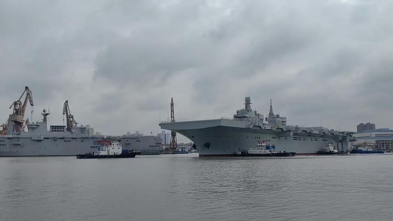 075与076,两代两栖攻击舰同框[灵光一闪] 076四川舰甲板上面有一架疑似GJ-21无人机或模型,期待早日看到四川舰弹射舰载机的画面。[赞]