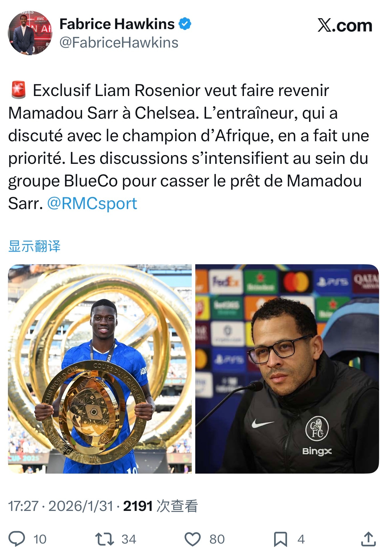 🚨独家消息:利亚姆·罗西尼尔希望将马马杜·萨尔带回切尔西。这位主教练已经与这位非洲冠军球员进行了交谈,并将此事列为首要任务。切尔西俱乐部内部正在加紧讨论终止马马杜·萨尔的租借合同。