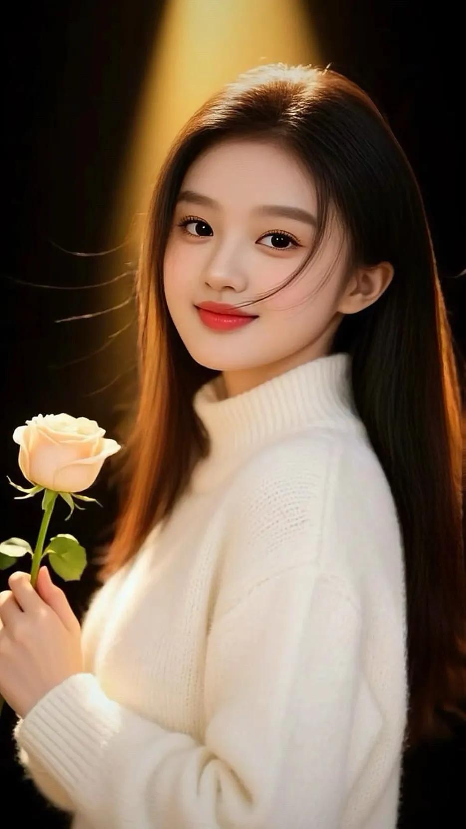 温柔甜美的少女,白色毛衣搭配,清新自然。街拍 高清美女