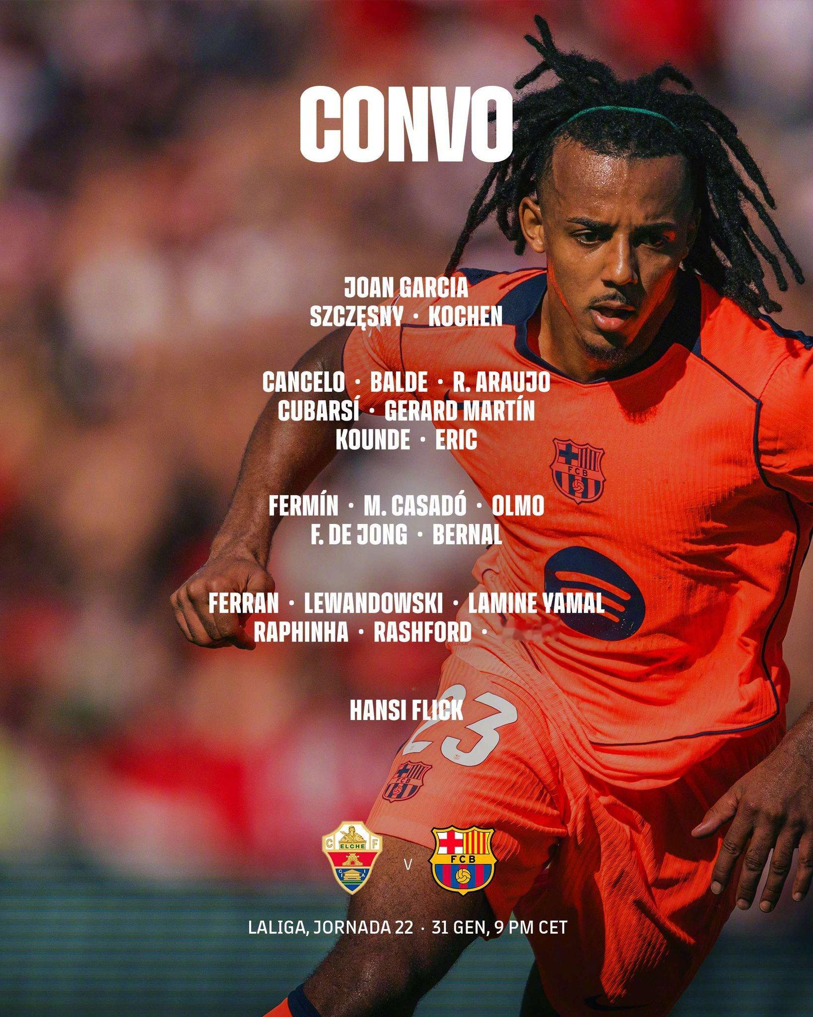 埃尔切vs巴萨 🔥大名单出炉🔥