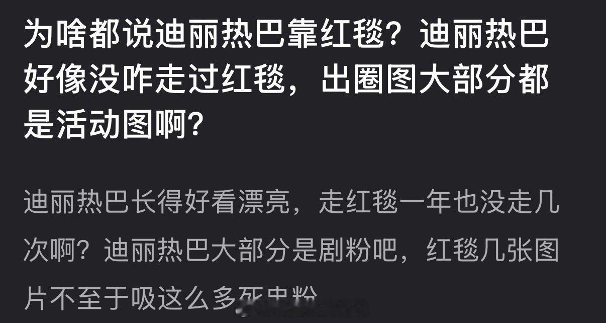 为什么都说迪丽热巴靠红毯?迪丽热巴好像没咋走过红毯,出圈图大部分都是活动图吧?