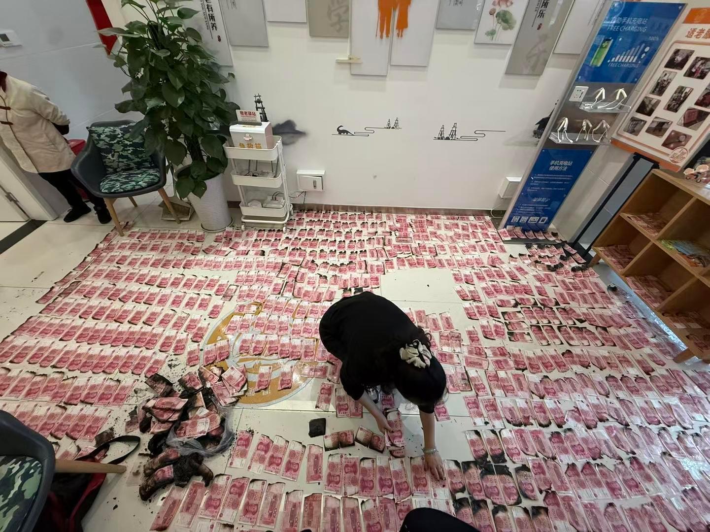 原来,去年12月底,贺先生的父母家中突发火灾,存放在家里的近40万元现金被不同程度烧毁。12月31日,贺先生及家人在提前咨询后把被烧损毁的现金拿到银行,经银行工作人员长达7个小时的清点晾晒和分类统计,后送上级单位鉴定复核,最终为其成功兑换27.32万元,把损失降到了最低。网页链接