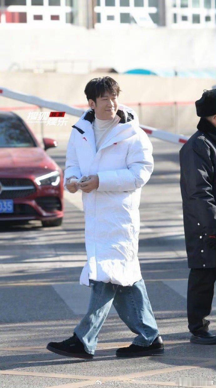 不愧是见过大场面的男人!这可是央视春晚联排现场,于洋穿白羽绒服溜达的样子,像极了