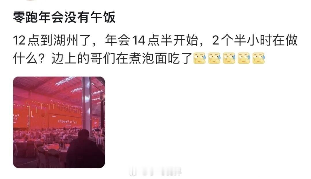 零跑开年会,让员工冒着雨赶到外地,结果会场没空调、没信号、甚至没饭吃,有人现场煮泡面,HR还建议自备干粮。员工冻得脚麻,饿着肚子听领导讲未来,这画面也太魔幻了。