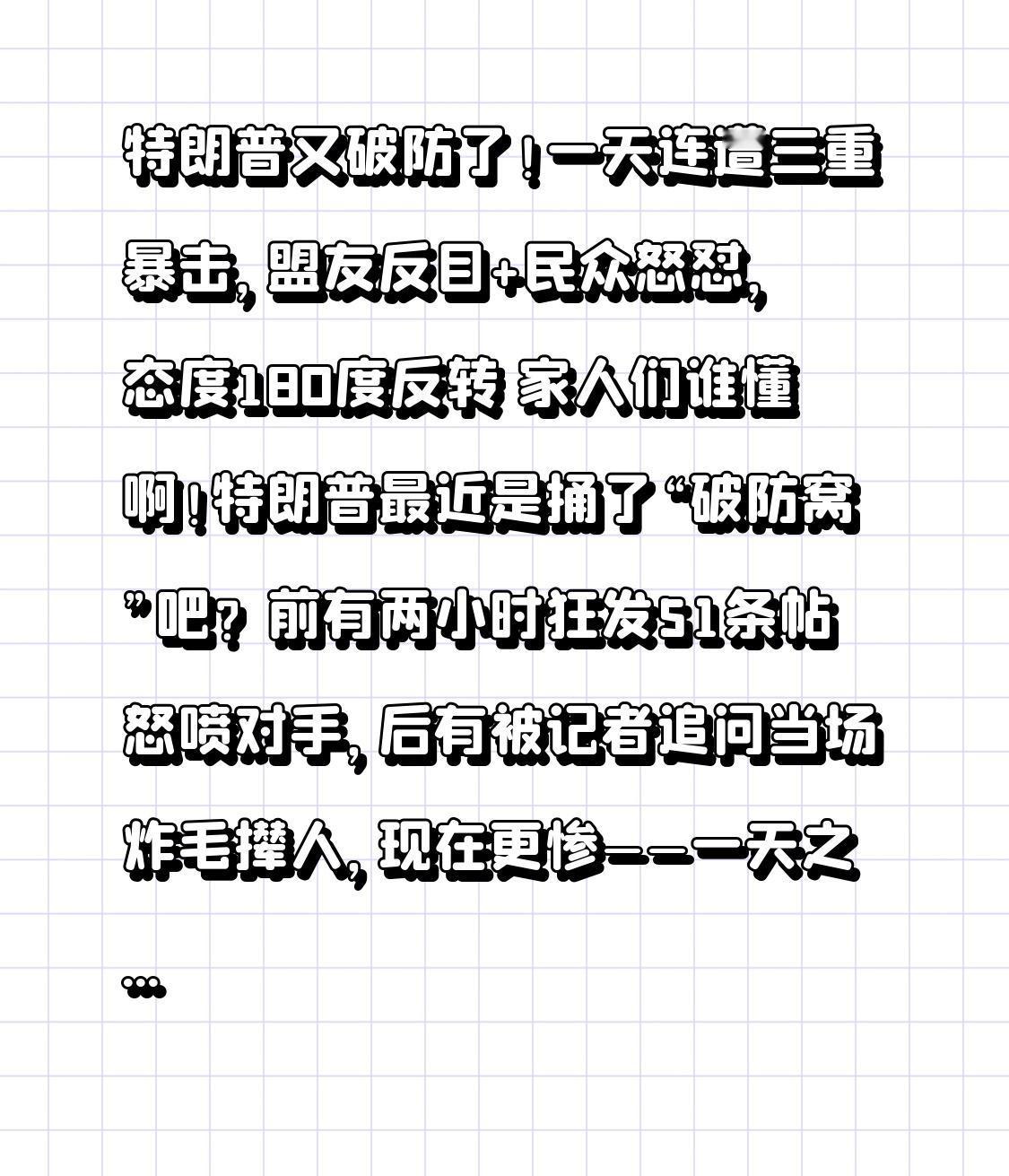 特朗普又破防了!一天连遭三重暴击,盟友反目+民众怒怼,态度180度反转 家人