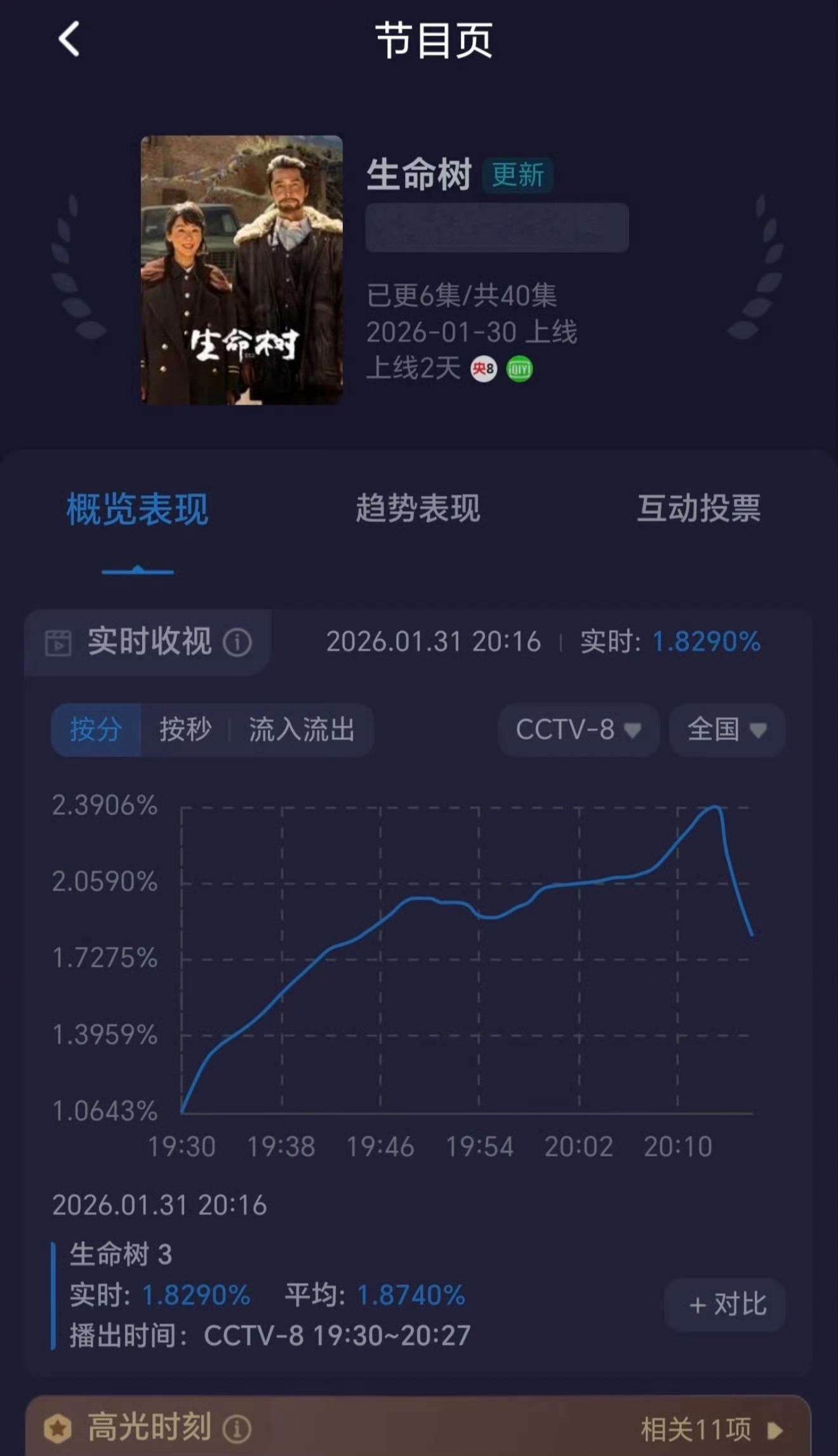 生命树收视率这剧热度还挺高的,有多少人在看啊?我是不打算看了,被短视频搞得没耐心了。现在只能看的下去动漫,毕竟一集十来分钟就结束了