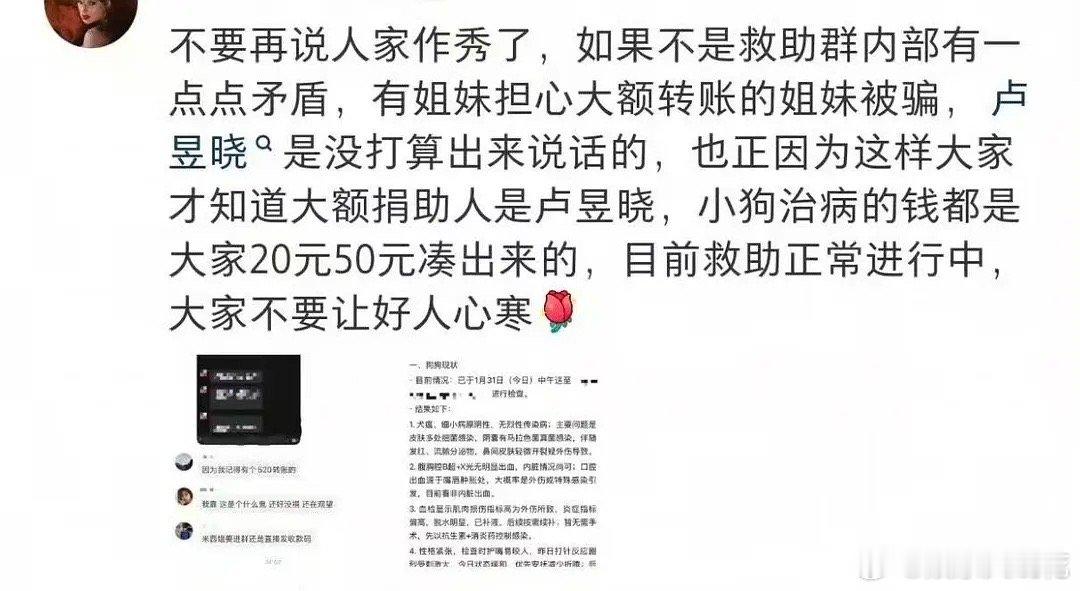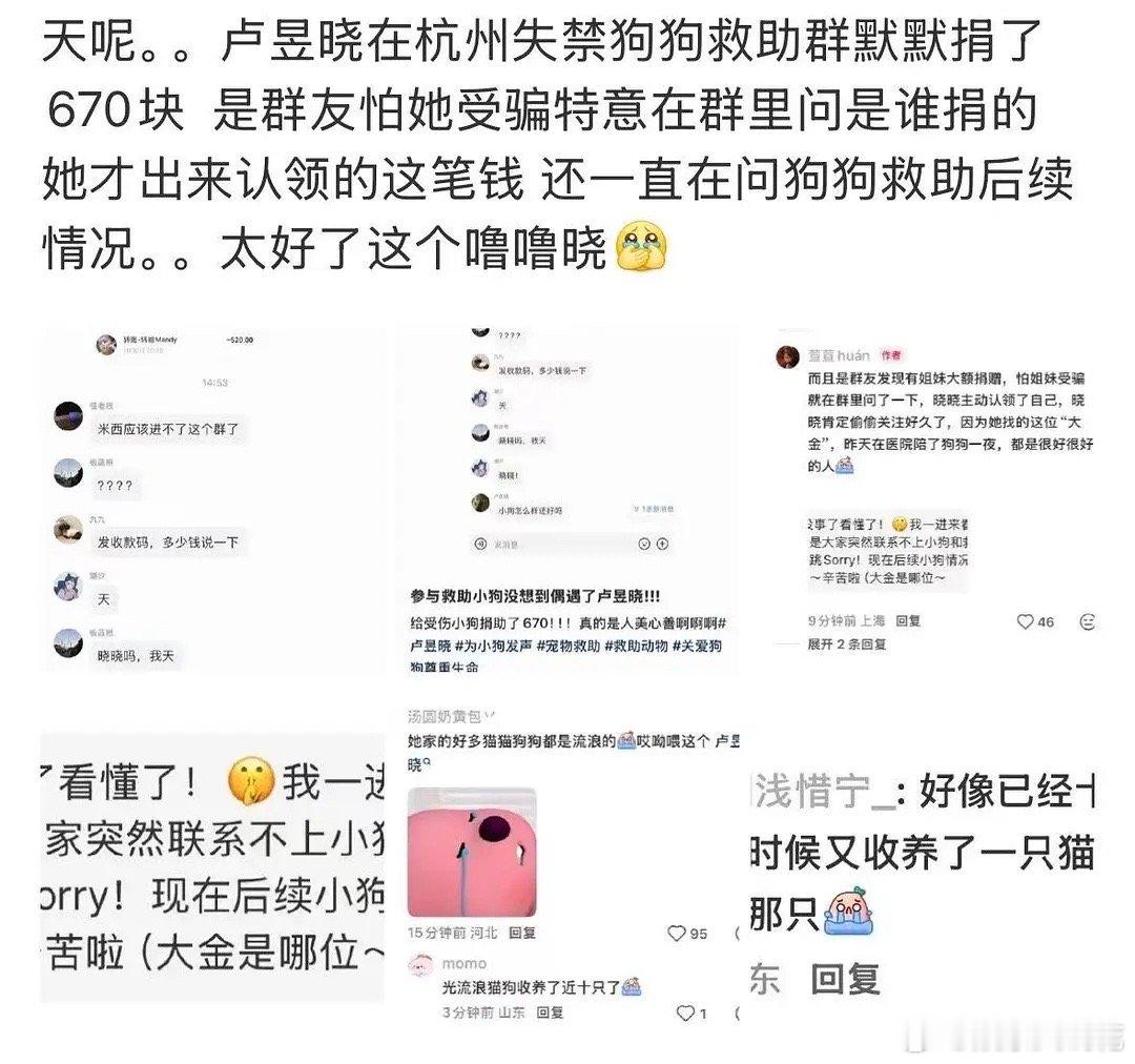 卢昱晓默默给受伤小狗捐款被质疑作秀,但印象里她一直都是爱护动物的善良小女孩吧从15年到现在了,这点没得黑啊