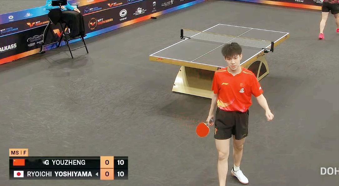 我去!黄友政燃烧起来了, 多哈支线决赛, 面对日本选手吉山僚一, 黄友政打的硬气, 相持 第一局5:2开局, 不过对方遮挡太厉害了, 很快追到了5:5, 随后两人一路打平, 9:9的时候, 黄友政一个倒地爆冲得分, 提气! 最后黄友政12:10拿下第一局