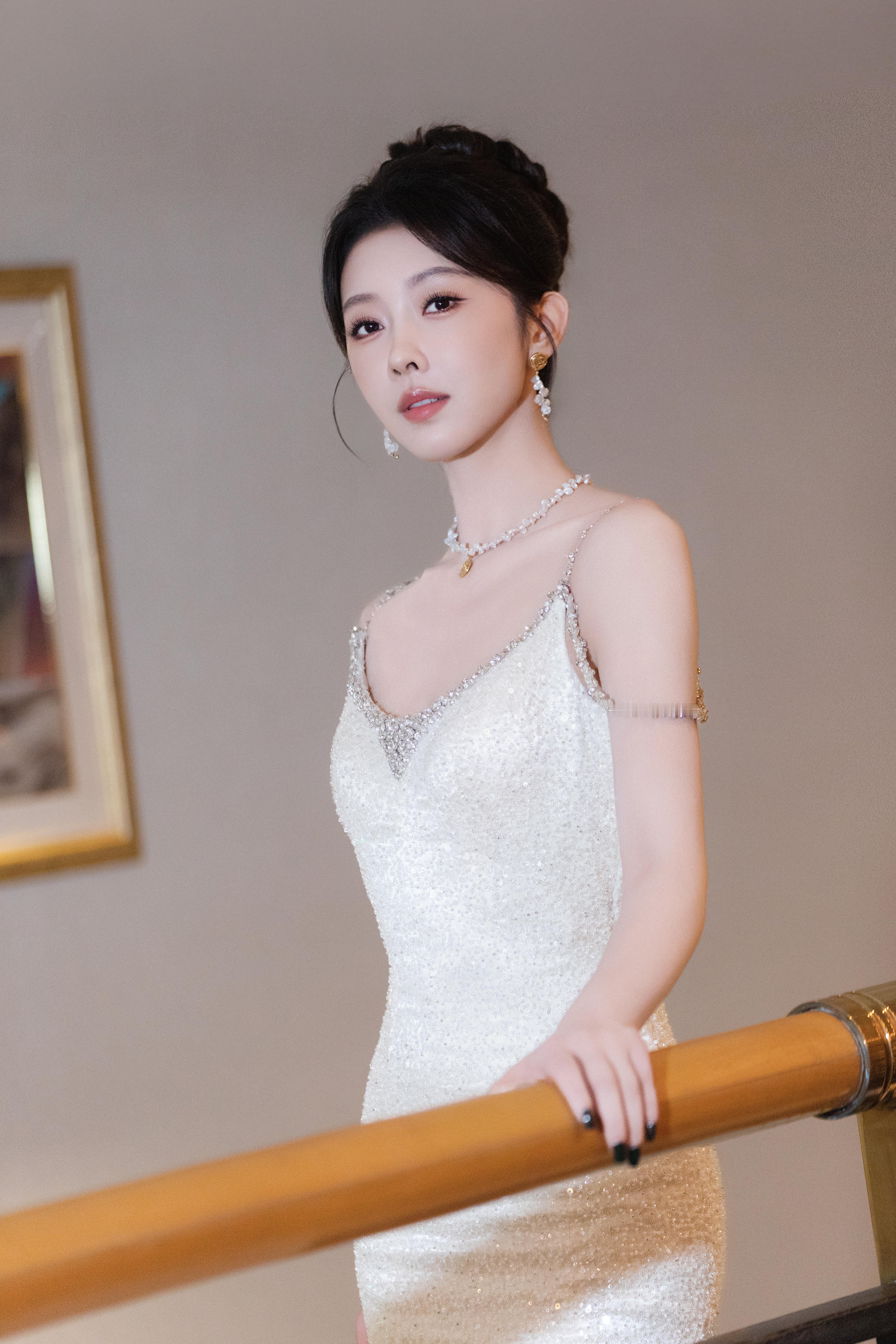 张天爱跟素人合影,胯真的好宽,大宅院似的