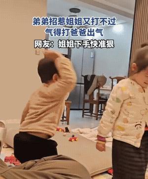 弟弟他是先动手,还想让爸爸帮他。他这个年龄段,爸爸可能帮,若再过个五六年,他的爸爸是肯定不会帮他的。 打不过姐姐,他竟然冲着爸妈撒气,这也太逗了。