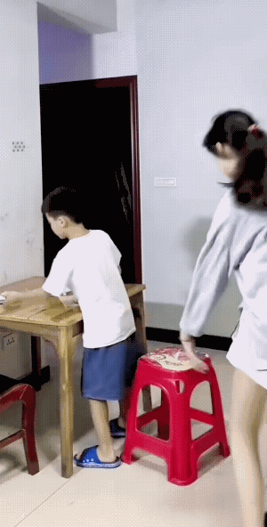 小男孩不仅让二姐下了套,蹲着了屁股,而且还被大姐打了一下腰。 小男孩被大姐打了以后,吓得不知所措,也不敢解释。估计他的大姐姐也不会听她的解释。 哈哈,小男孩有了“快乐”的少年期。