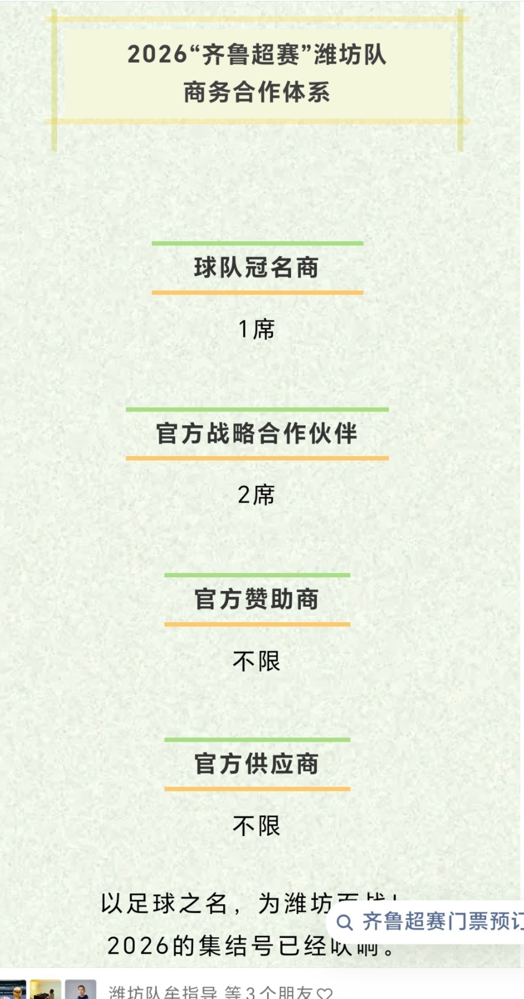 2026齐鲁超赛,潍坊队招商开始,诚邀各大品牌赞助商一起加入!携梦想,2026再