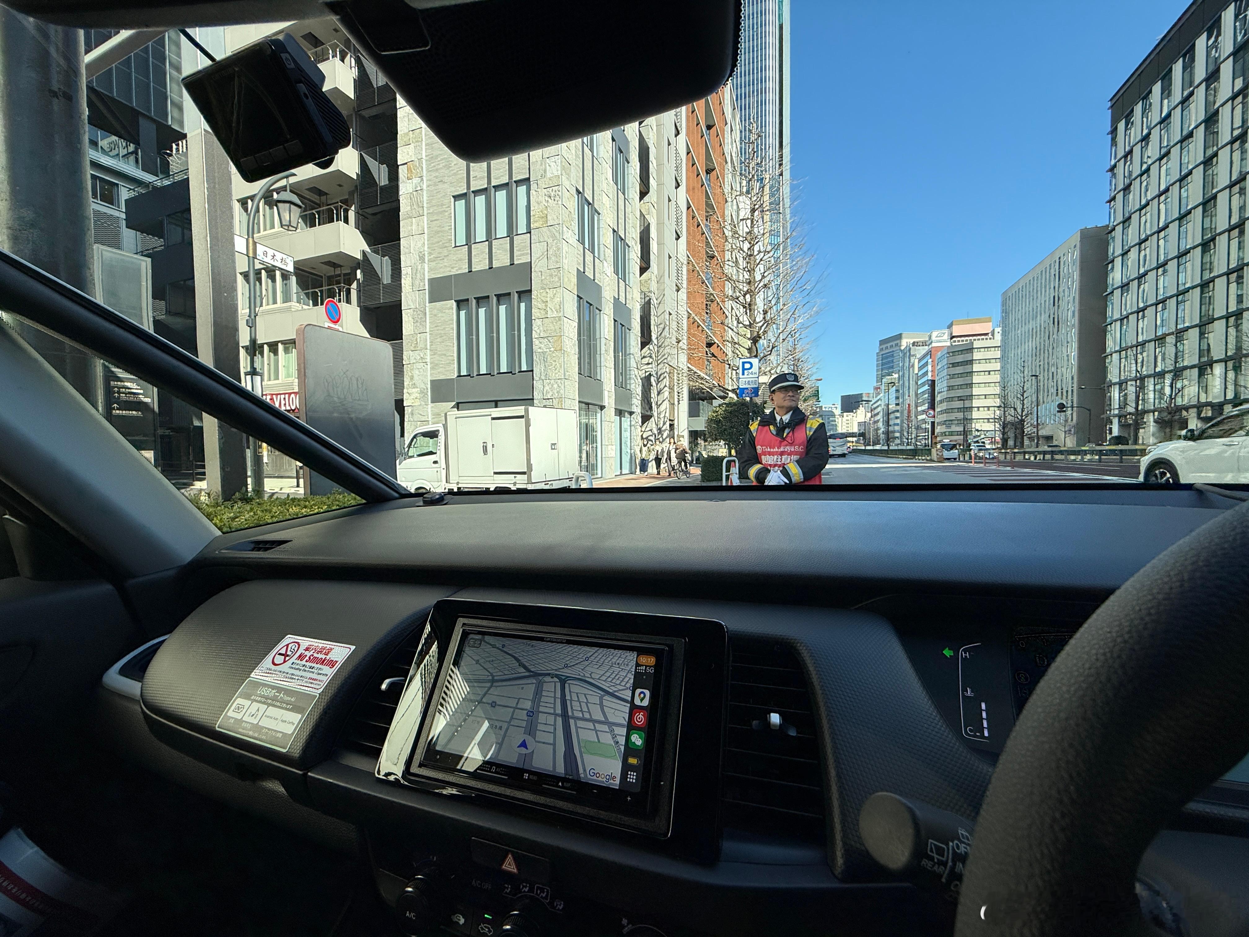 早上开车到高岛屋,老远就有穿着“高”字背心的工作人员引导进停车场,所有车先在大路上靠边排队等待,然后依次有3位工作人员引导维持秩序。这么做的目的是为了不堵住图4这条进停车场的小路,影响别的车辆通行。