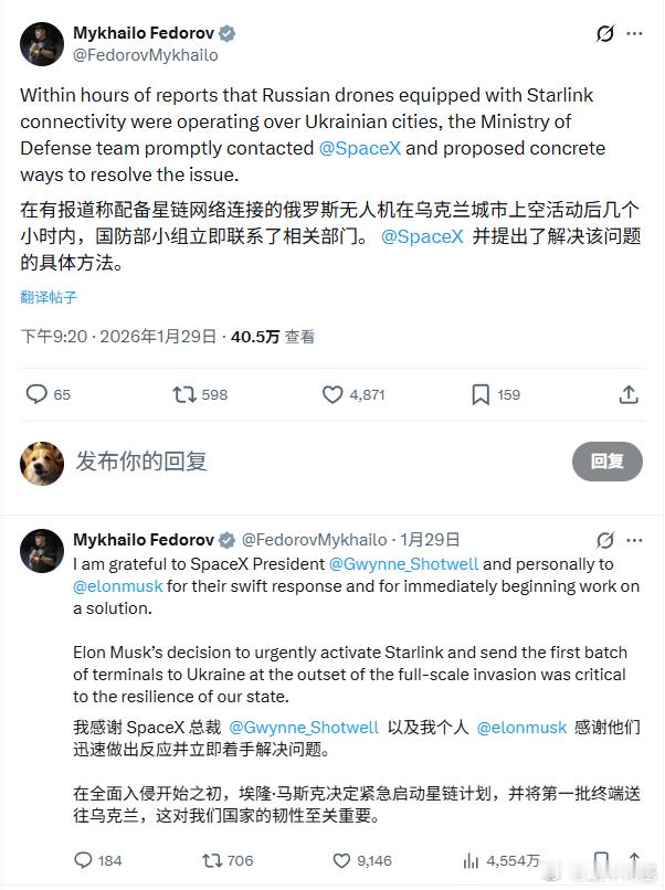 在乌克兰防长费多罗夫的呼吁下,马斯克及其团队表示积极配合解决俄罗斯部队蹭WIFI