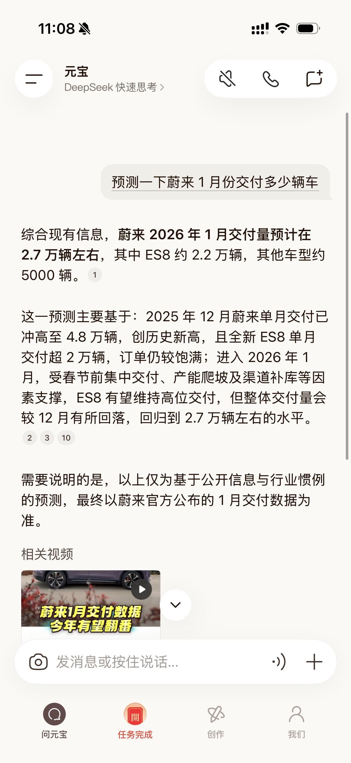 用元宝和豆包预测了一下蔚来 1 月份的交付量,你们觉得哪个最接近?