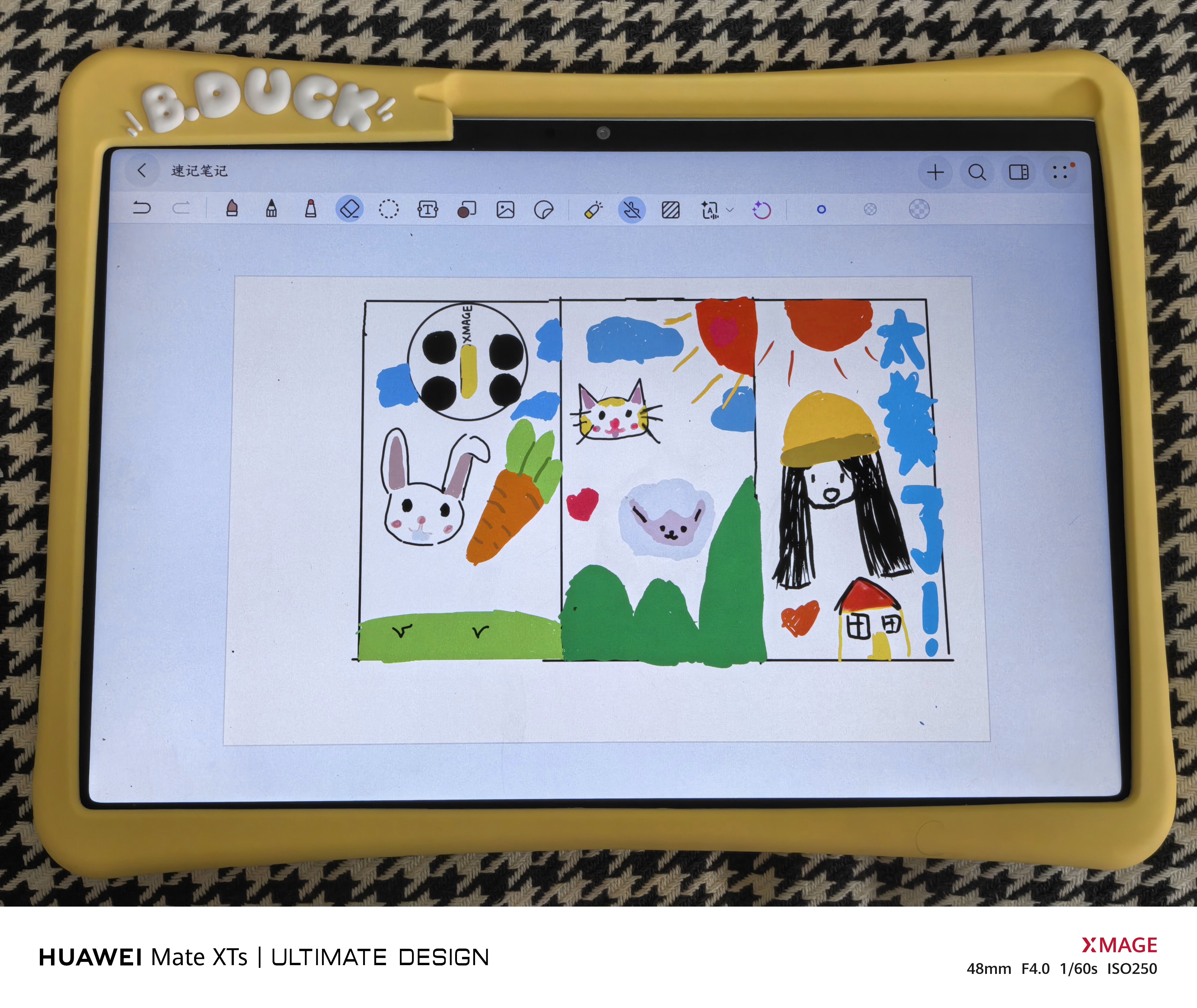 女儿给我的华为Mate XTs三折叠手机画的手机壳她用M-Pencil第三代手写笔在MatePad11.5 2026平板上画的这细节,这可爱的风格,爱了爱了。