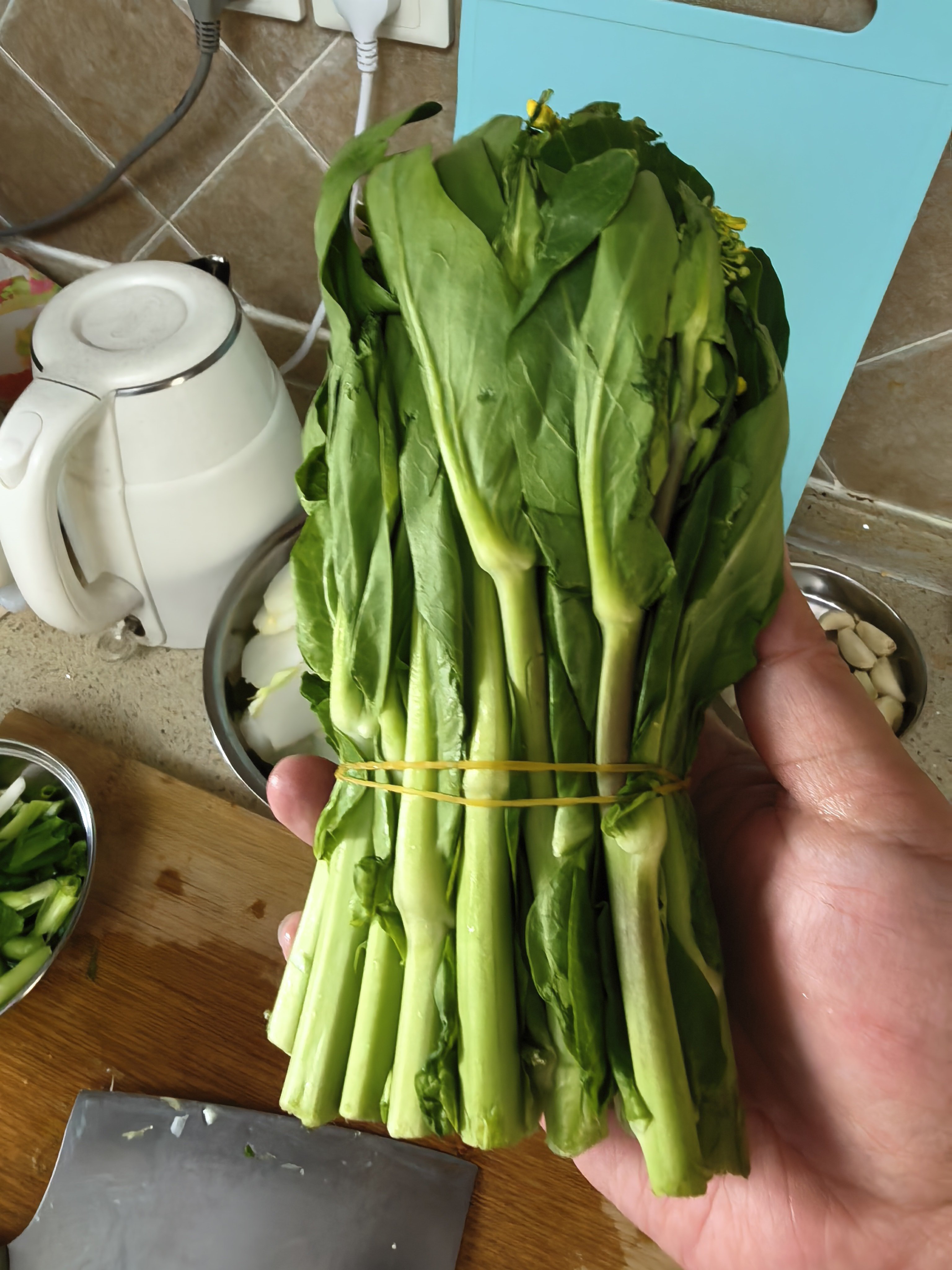 腊排骨已经炖好,今天腊排骨火锅,涮棒菜。找了3个市场,想买点白菜苔,结果摊主大姨大叔们一个劲跟我说,这就是白菜苔,无奈买了两把回来凑合我估计在北京有80%的人都没吃过棒菜。
