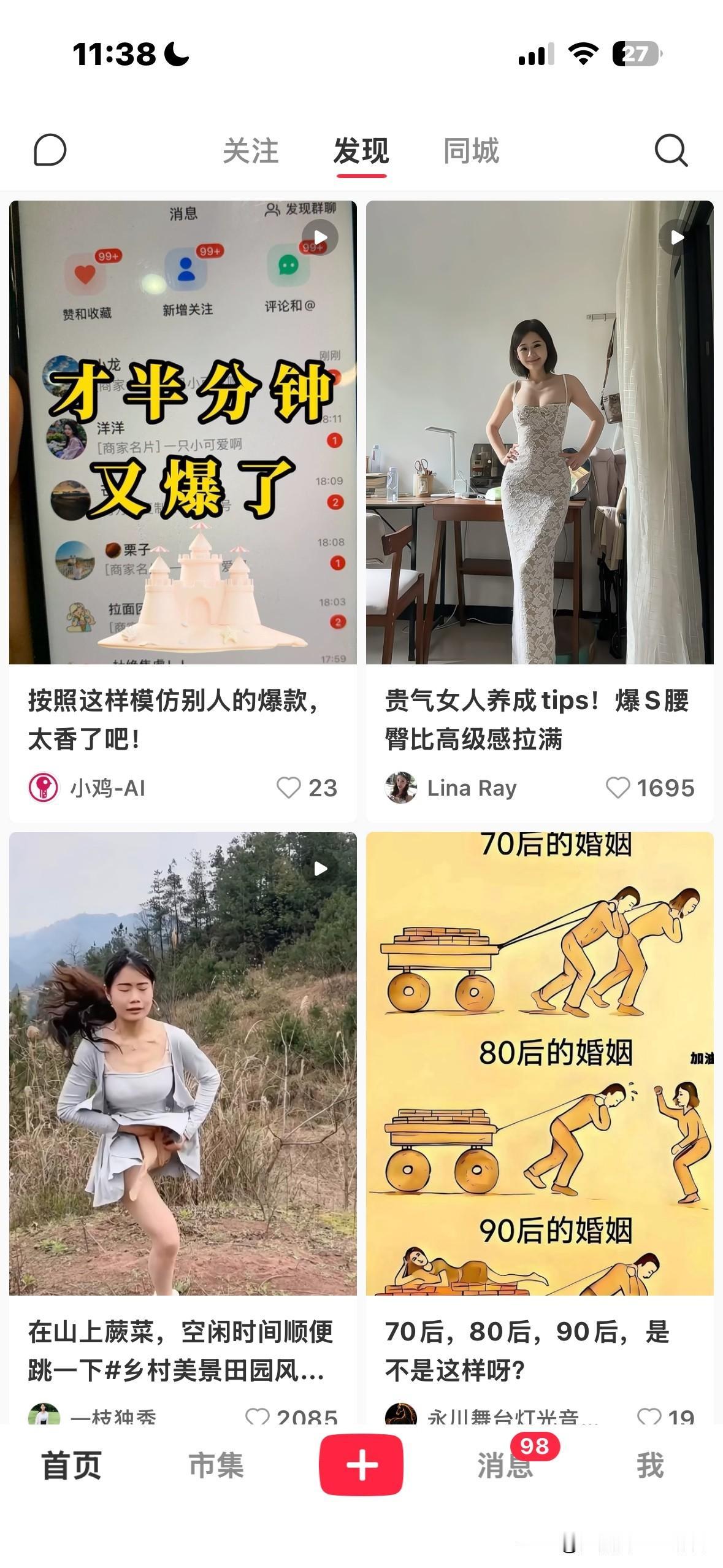 内容审核是个伪命题(真正火爆的平台都在"纵容") 作为一个三年没打开小红书的"老用户",这次回来让我看到了一个完全失控的生态。也突然明白一个app简陋,各种功能模块缺失的一个平台,为什么能走到如此远的地步。该文配图是在无任何游览记录,自动刷新三次得到的,细心的人可以看看共性。 审核机制的混乱,是这个平台的原罪,也是它的护城河。 你在情感区看到的是"极端观点"的狂欢,美妆区充斥着"过度种草"和虚假人设,男性区则是各种软色情的擦边内容。每个分区都在用不同的规则运转——情感区几乎零审核,美妆区只查违禁词,男性区则是对擦边内容的"睁一只眼闭一只眼"。这不是统一的管理,而是分区纵容。 算法推荐更是火上浇油。 它不看内容质量,只看"用户标签"。你是女性?推美妆情感。你是男性?推美女游戏。标签越精准,内容越极端,留存率越高。算法不在乎内容是否健康,只在乎是否"爽"。 最可怕的是,这种混乱形成了正向循环。 因为审核松,创作者敢发极端内容;因为内容极端,用户停留时长增加;因为数据好看,平台更不会收紧审核。小红书的火,本质上是用混乱喂养了算法,用纵容换取了增长。 当其他平台还在追求"健康生态",小红书已经证明了:野蛮生长才是流量时代的生存法则。 小红书 互联网分析 平台机制 流量密码 内容运营 算法推荐 用户体验 创业思考 商业洞察