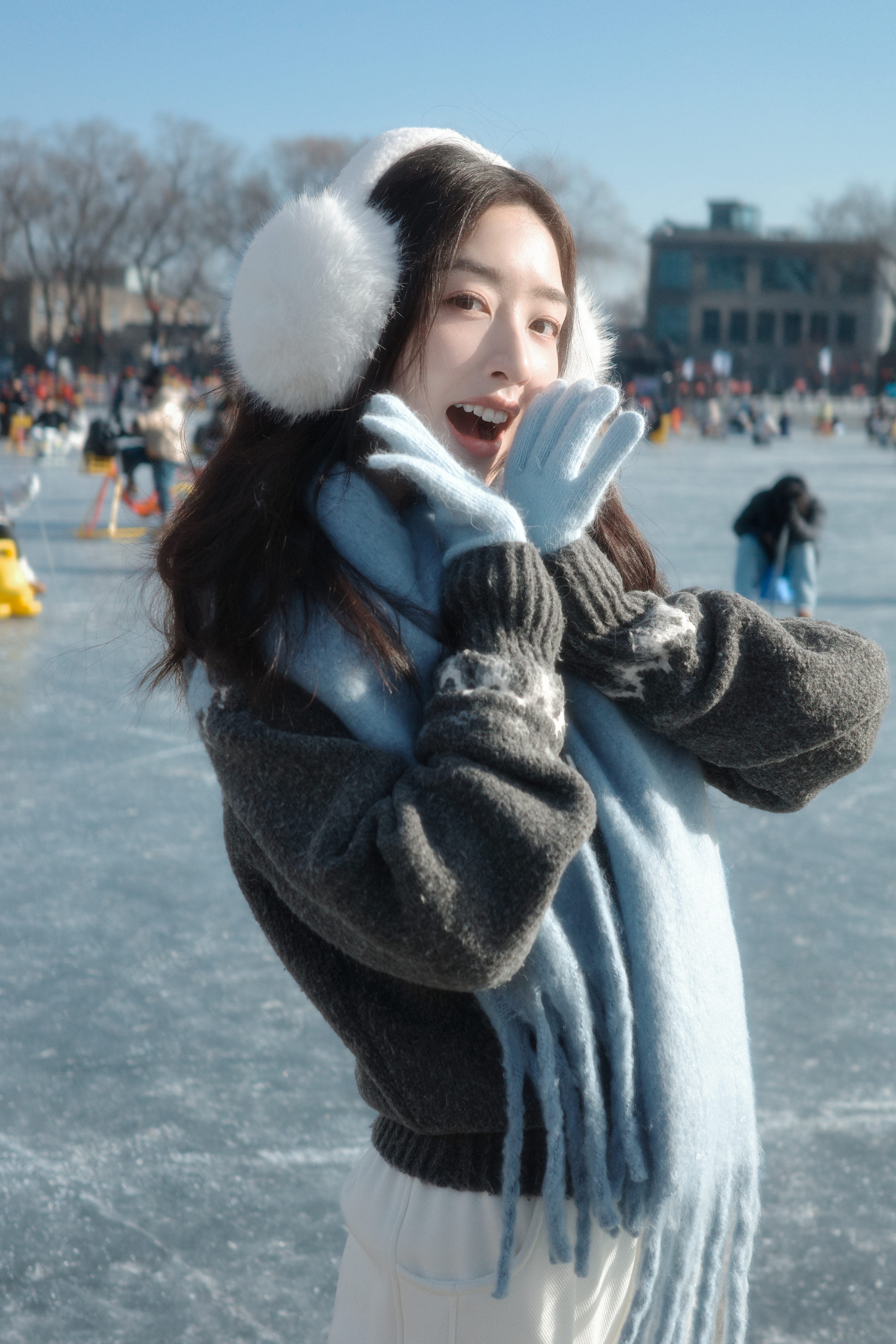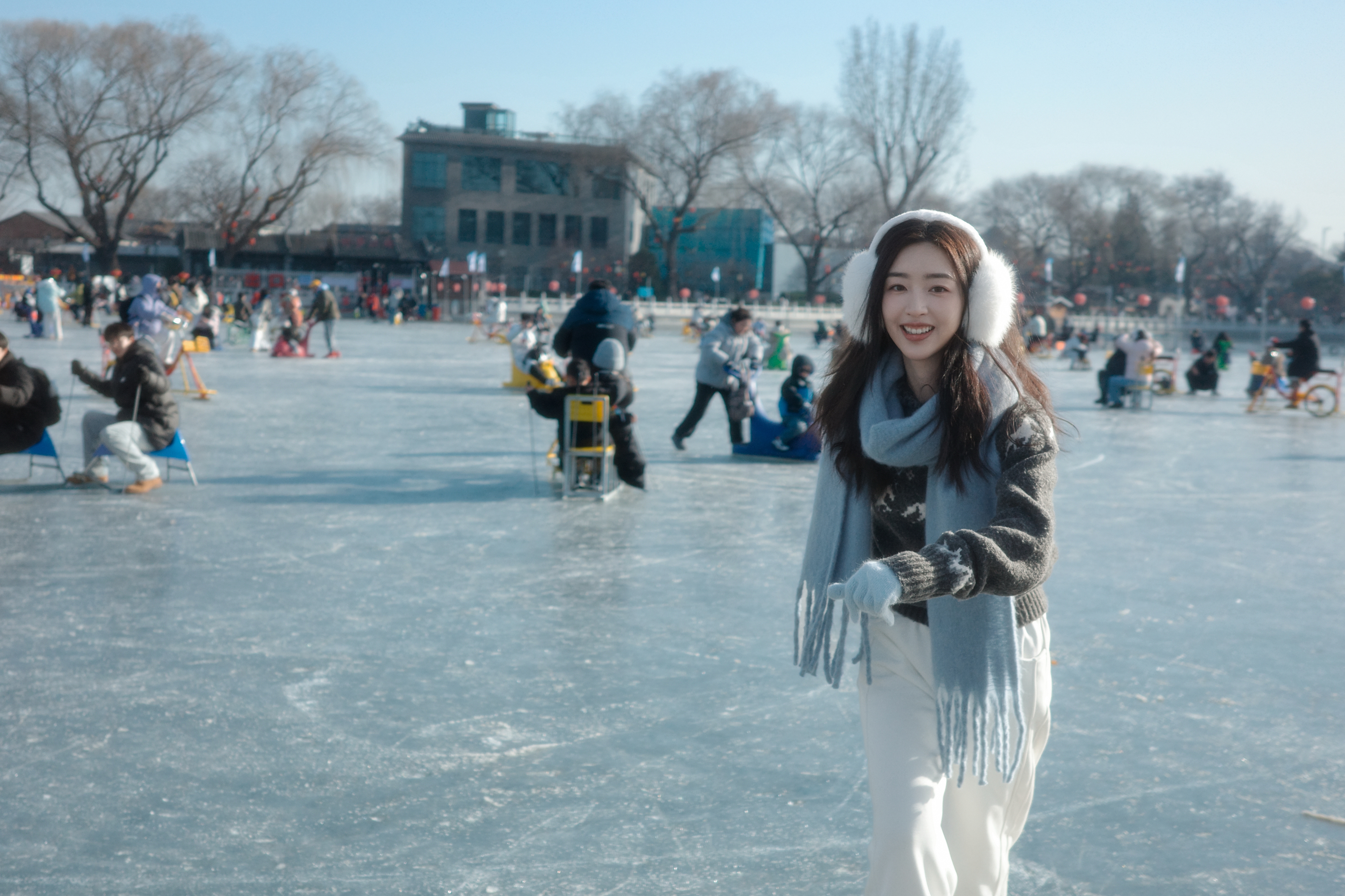 张天爱跟素人合影,胯真的好宽,大宅院似的