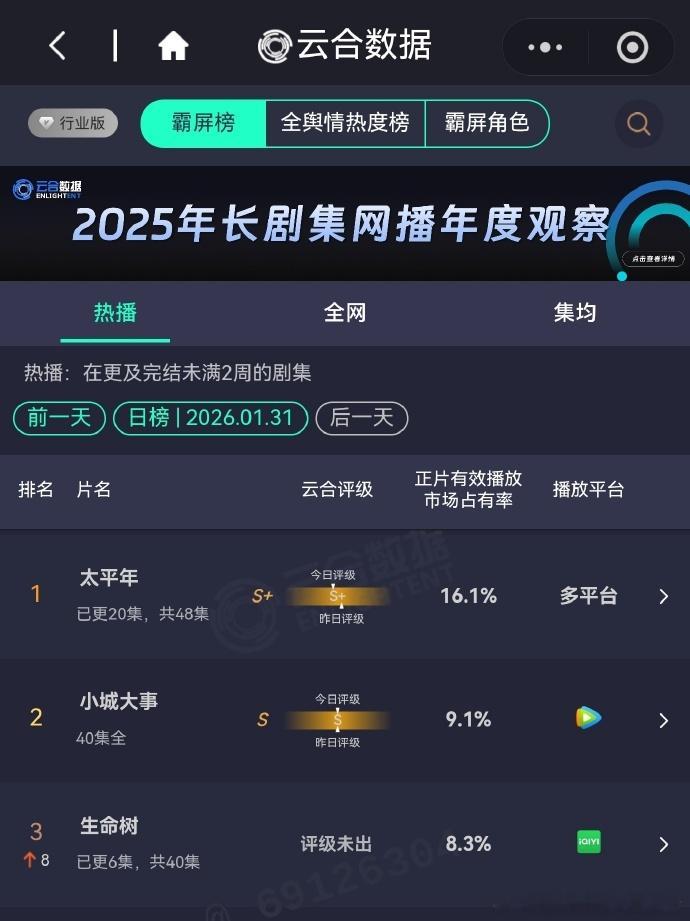 生命树云合8.3%生命树云合第三云合数据显示,《生命树》次日表现 8.3%,位居