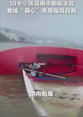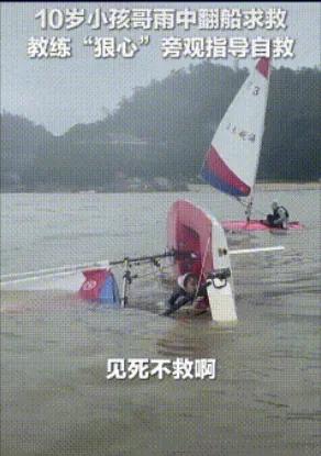 暴雨如注,帆船倾覆,10岁男孩在水中半开玩笑地喊出“见死不救啊!”...而教练真的没有伸手。 这一幕发生在深圳大鹏帆船基地。男孩落水后本能抓住船杆,教练靠近却只给指令:“游到船尾”“去稳向板位置”。男孩一次次尝试,一次次喊上不来,教练始终用语言引导,直到男孩靠自身力量将船扶正,又挣扎着爬回船上。 这看似冷酷的背后,是教练放手不放眼的专业把控。 网友一语道破,这节课已值回90%学费!因为教练传授的不是简单技巧,而是直面危机的勇气与能力。 这与一些悲剧形成鲜明对比!有的孩子因监护缺失而溺亡,同伴却因年幼无法施救被法律认定无责。 我国未成年人溺亡占比高达56%,而搜救人员从台风海域救起10岁漂流者的事件也时有发生。可见,与其永远为孩子遮风挡雨,不如在安全可控时教会他们迎浪而行。 正如另一海南男孩为给骨折母亲钓鱿鱼,漂流30公里后获救时所说,我学会了勇敢面对一切。真正的成长,始于那句你能行的信任。 这堂暴雨中的实战课,或许正是孩子未来人生中,抵御风浪最坚硬的内核。