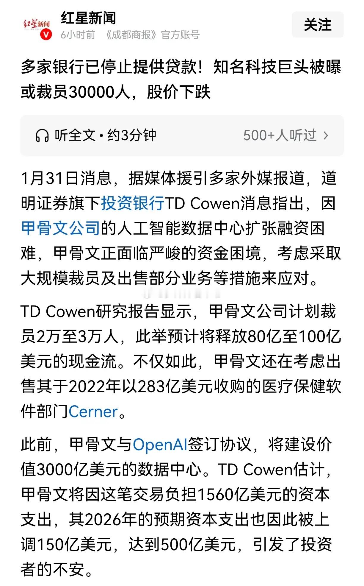 甲骨文裁员3万人!欧美工人权益真相:银行停止授信,企业说裁就裁