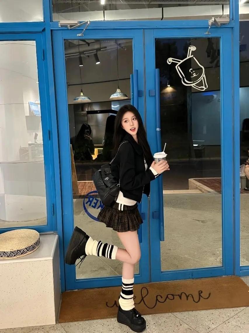 少女摄影|NO.0342期 清纯少女私房写真 黑色套装和紫色小腿袜也很搭呢
