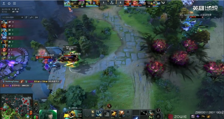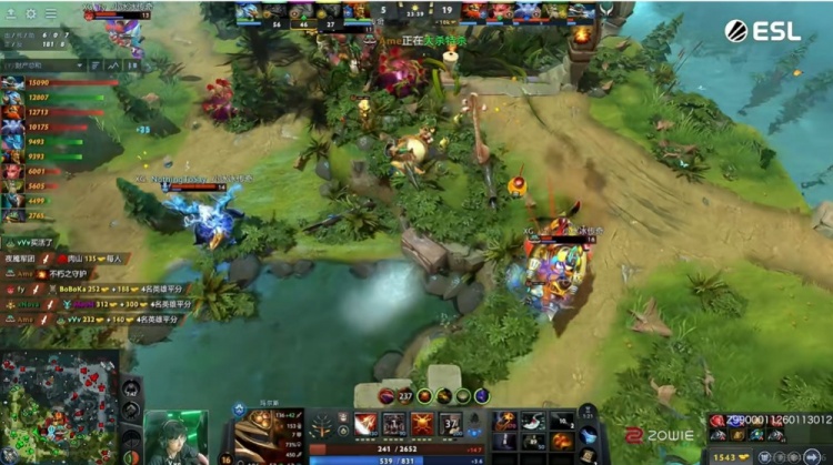 [22分钟]野区团战Xxs马尔斯框大先手秒掉朗戈逼出买活,Yang蝙蝠拉了一个BKB飞机但是直接被Ame飞机射死了啊!XG拿下肉山,Ame飞机带盾,YB还没跑结果被Fy花仙子恐惧两个,YB只是换掉了Xxs马尔斯,但是MooN拉席克和天命的朗戈都没跑掉!天命朗戈还是个买活死!