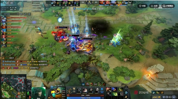 [38分钟]肉山团,YB先行开打,Xxs马尔斯框+矛配合NTS女王大招进场瞬间秒了三个啊!虽然朗戈交出买活但是Xxs马尔斯刷新框大配合Ame飞机强杀掉了flyfly凯!XG接盘肉山,Ame飞机带盾!XG直接抱团拆掉了中路高地!再转上!Boboka猛犸第一波带回Ame飞机将他盾打掉!但是Xxs马尔斯框大配合上了Fy花仙子恐惧+xNova大树大再度瞬间秒人啊!完美配合啊!flyfly凯被融化了!但是Boboka猛犸再度立功!一个扭头大把XG双大哥都带回了泉水里击杀!本来XG可以结束比赛但是这波依靠Boboka,YB守住了!