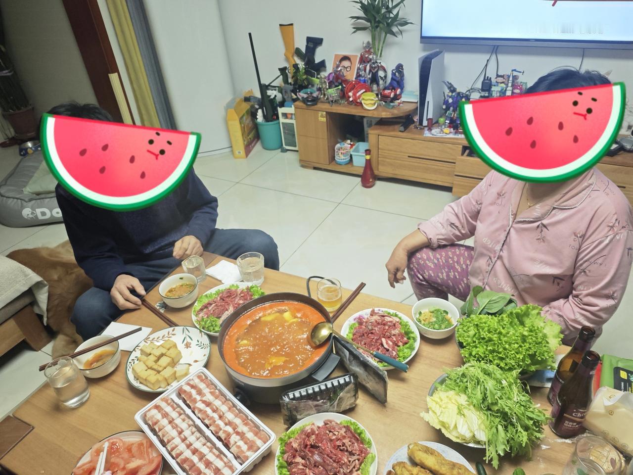 昨晚跟公婆在家吃了一顿火锅 我们四个大人,1个孩子 买了两斤牛肉:81 一盒一斤牛肉卷:39.9 鱼豆腐:12 底料蘸料大概:30 五六种青菜:15 一盒毛肚:15 一盒百叶:15 一共花费:208 最后吃完还剩下了一斤左右牛肉[捂脸] 还是在家吃省钱哈 如果在外边火锅店 按照这个量来算 估计得四百左右吧 电锅很给力,水开的特别快 番茄味的锅底真不错 你们会经常在家做火锅吃吗 火锅食材牛肉卷 毛肚牛肉火锅