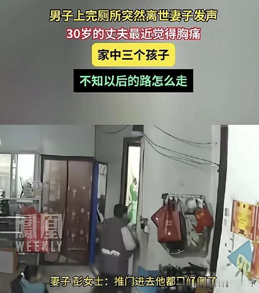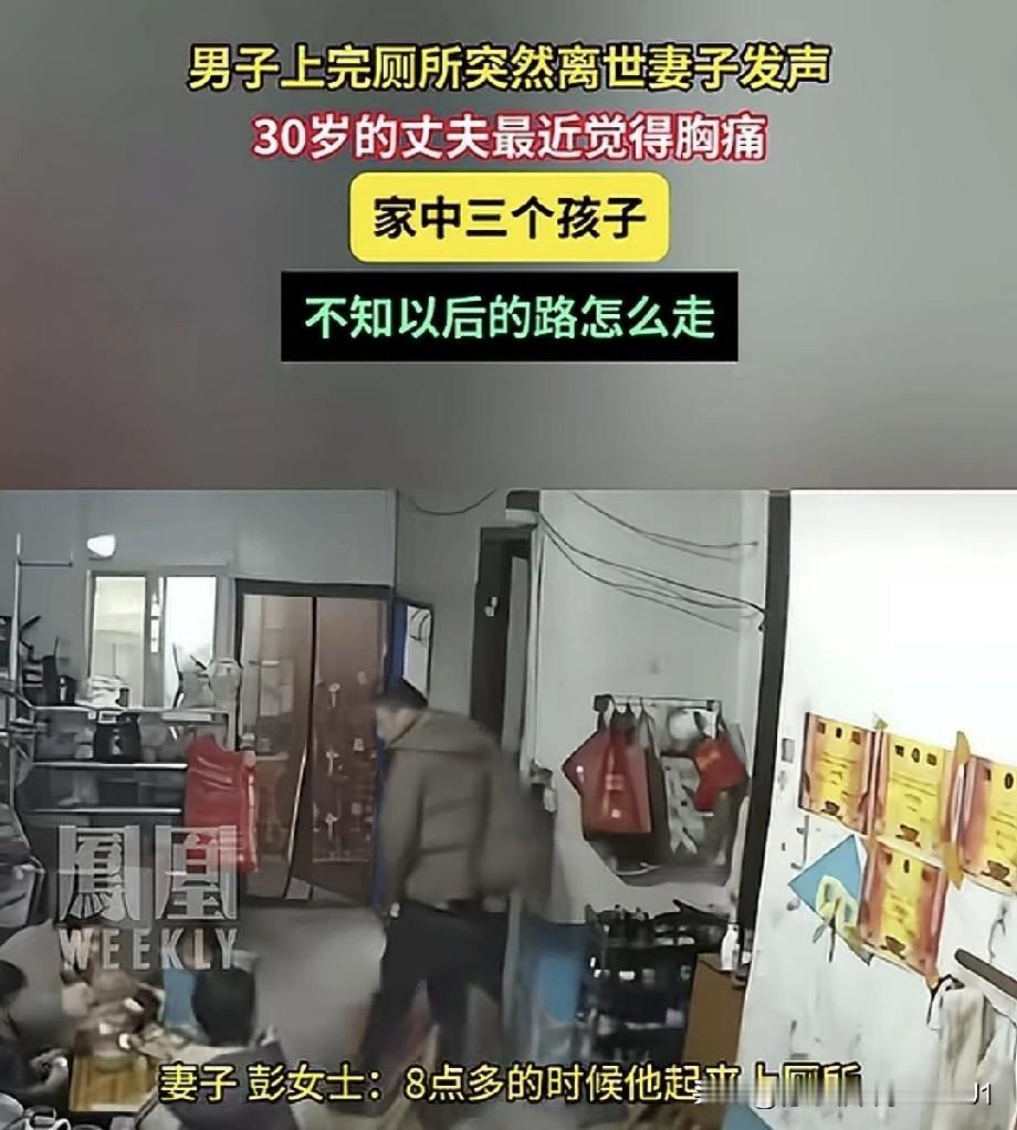 麻绳偏挑细处断,厄运总缠苦命人。 近日在河南南阳,一名三十岁男子仅仅上了几分钟厕所,便突然离世。监控记录下了男子最后的画面,早上八点多,男子进入厕所没多久,孩子听到厕所有异响,冲进厕所后发现父亲已倒地不起。 男子妻子在接受新闻媒体采访时表示,男子留在家中照料年迈且正在化疗的父亲,同时还要照顾家中三个孩子,所以没有外出打工,孩子妈妈则外出打工赚钱贴补家用。最近和丈夫聊天时,才得知他感觉有点胸痛,也去医院检查过,正在打点滴缓解。谁能料到,只是上个厕所,人就没了。如今三个孩子中最大的才12岁,上个月刚过完生日,最小的才五岁,往后可怎么办啊? 推测应该是主动脉夹层,上厕所用力导致血压突然升高,主动脉破裂、大出血,最终猝死。如今猝死的人越来越多,且大多都很年轻,皆是生活压力大、熬夜所致。 唉,经济本就不宽裕,老人又患病,还生了3个孩子,何苦呢。人生只有这一辈子,并无下辈子。生命仅有一次,要好好善待自己,健康才是最重要的,你在,世界就在。什么传宗接代、养儿防老、勤劳致富,不过是心灵鸡汤罢了。自己多存点钱,多保重身体,才是正理。 对此,大家怎么看?