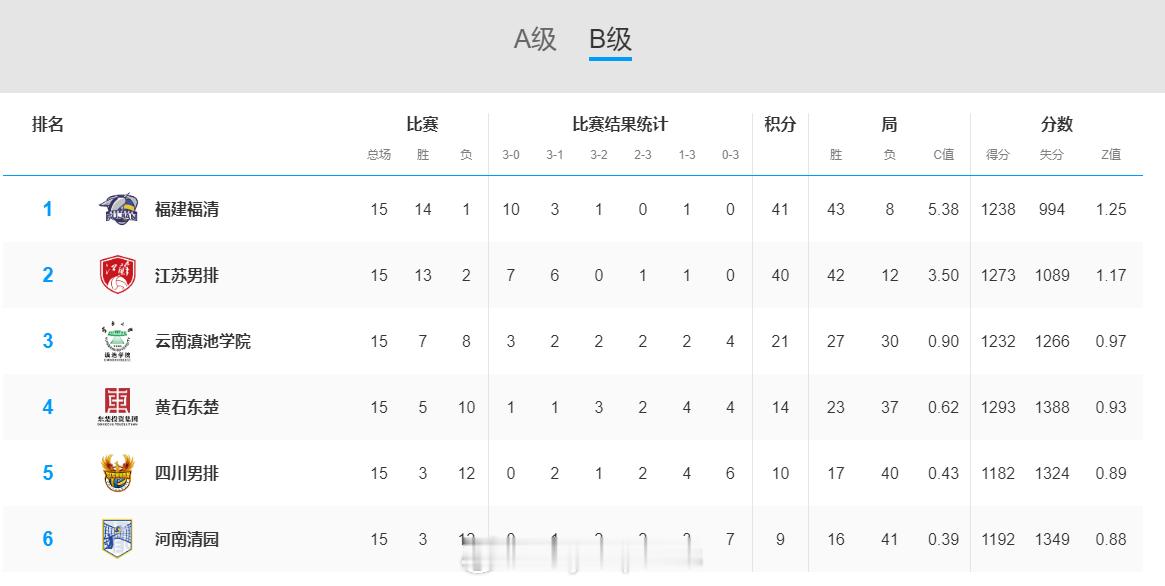 【排超男排联赛升降赛对阵确定】排超联赛 2月1日,男排联赛常规赛结束,参加升降赛的球队和对阵出炉,分别是A级第七浙江、第八辽宁,B级第一福建、第二江苏。升降赛采用主客场制,四支队伍进行交叉赛:B2-A7,B1-A8;采用两场“金局”制。A级队先进行主场比赛。胜者季后赛进入A级比赛,负者进入B级。对阵为浙江vs江苏、辽宁vs福建。