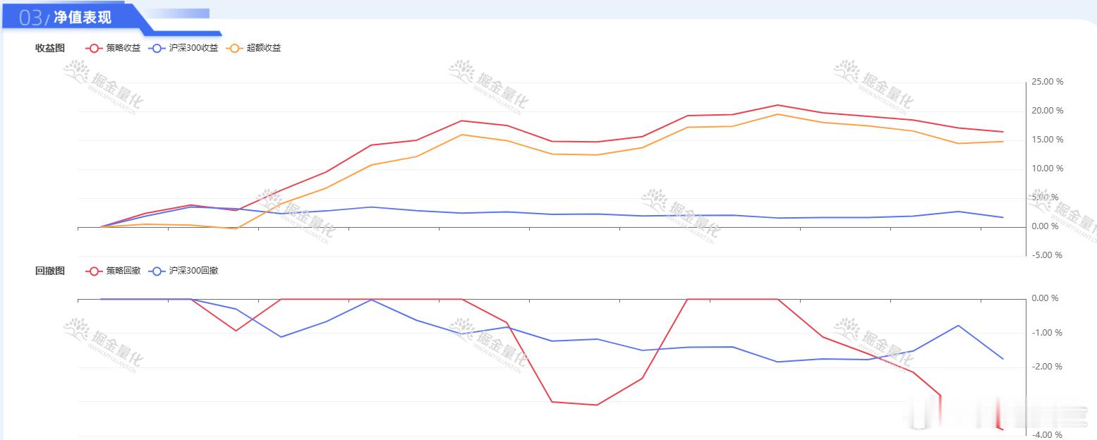 最大回撤(-3.83%)控制在一个相对较低的范围内,且与基准的最大回撤幅度接近(回撤图所示,但策略波动稍大)。