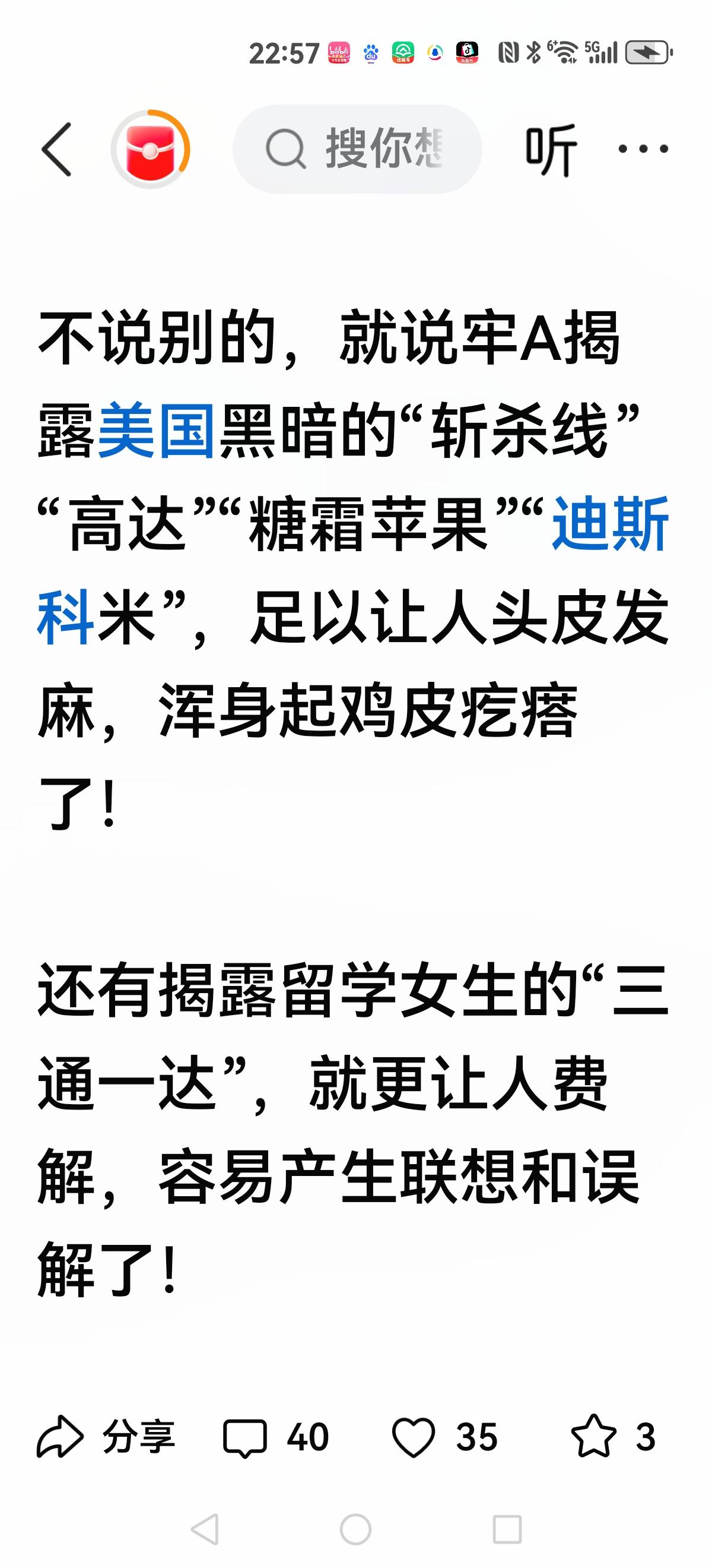 【是臭味相投,还是志同道合?】 牢A的“斩杀线”让张与沈兴奋到了发现新大陆。 然而张与沈还是有点顾忌的,并不是一味赞同老A,有点去其糟粕,采纳精华,而这位高大咖就毫无顾忌感,有点百毒不侵的气势与之连线。 一个“批美”就是言词激烈,很有战斗力 一个揭露美国,形象逼真,身临其境回来的,更有说服力。 这两人连线,是臭美相投还是志同道合?