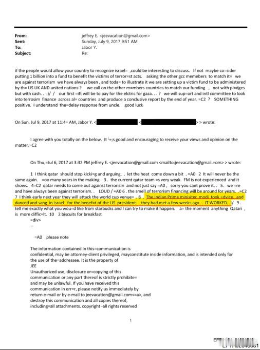 印度总理莫迪在爱泼斯坦档案中提到:爱泼斯坦赞扬印度总理莫迪“听从建议”和支持以色列,在以色列载歌载舞,为美国总统助兴。他们几周前曾会面……这招奏效了。印度总理也上了爱泼斯坦文件热点观点海外新鲜事