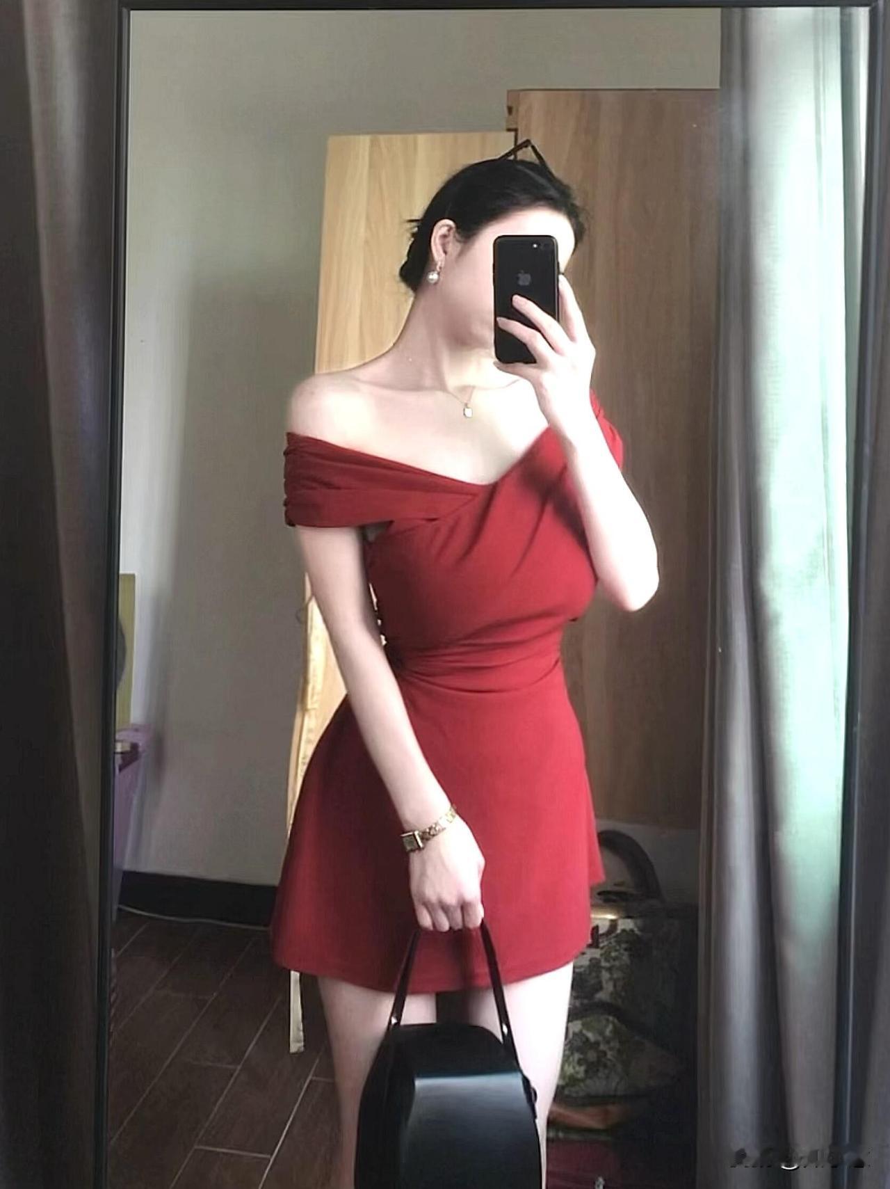 美腿辣妹,黑丝配黑色包臀连衣裙配红底黑高跟配披肩长卷黑发,简直绝了!