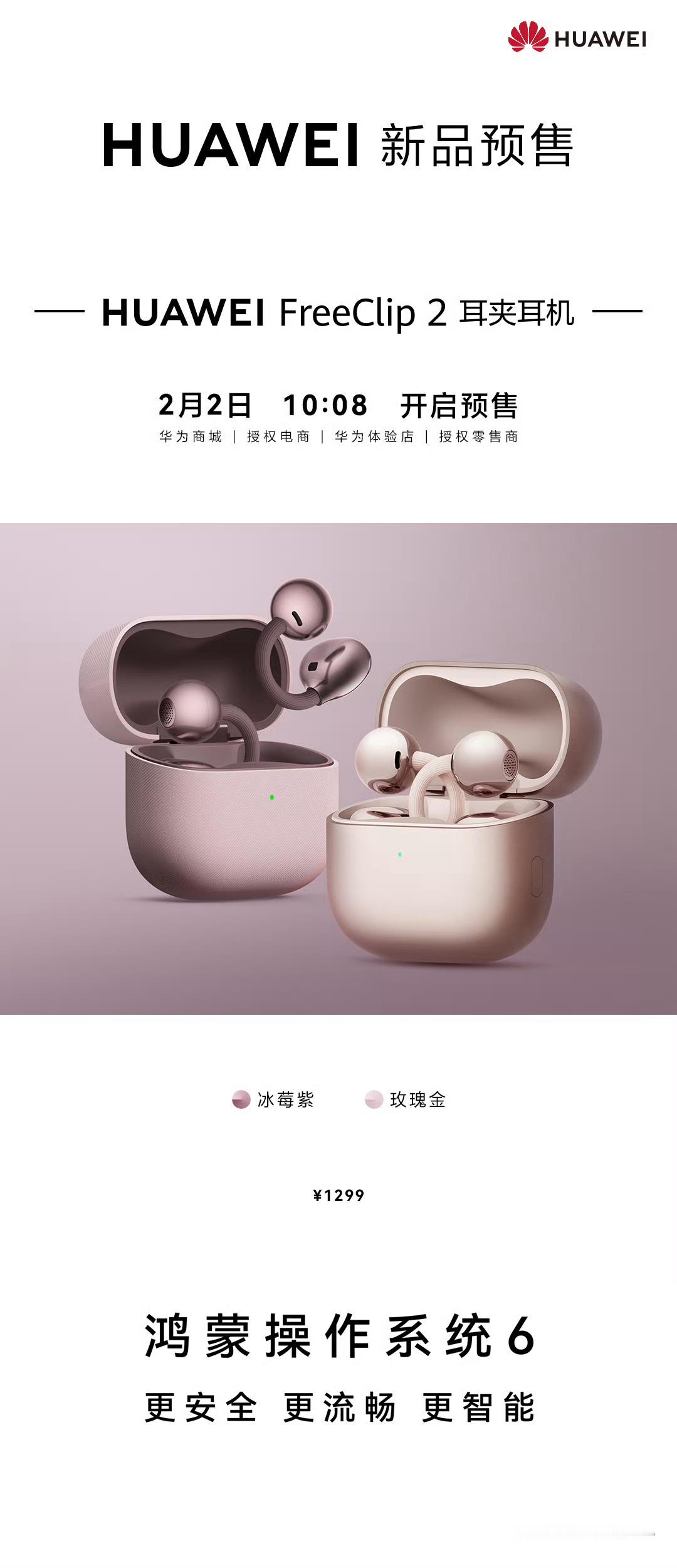 华为FreeClip 2耳夹耳机的两种新配色