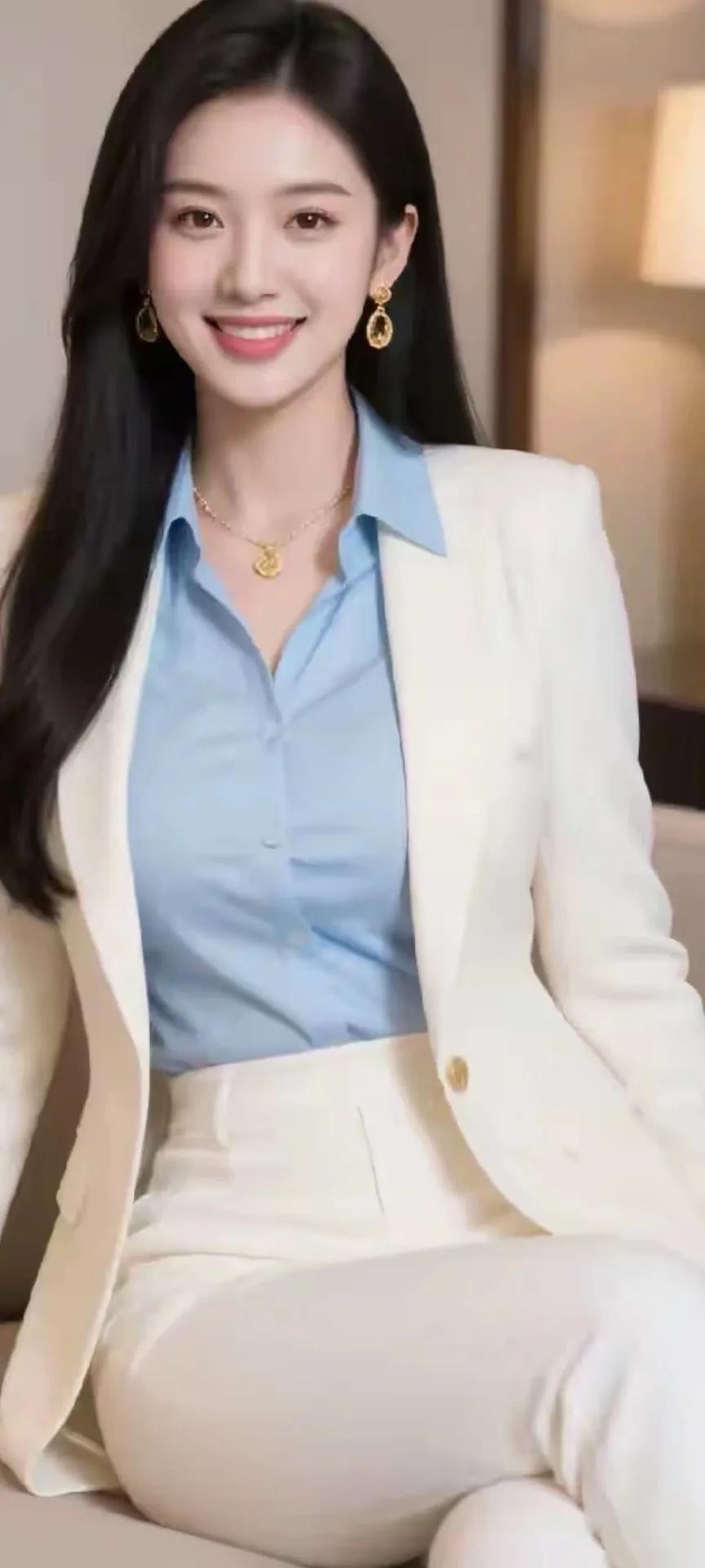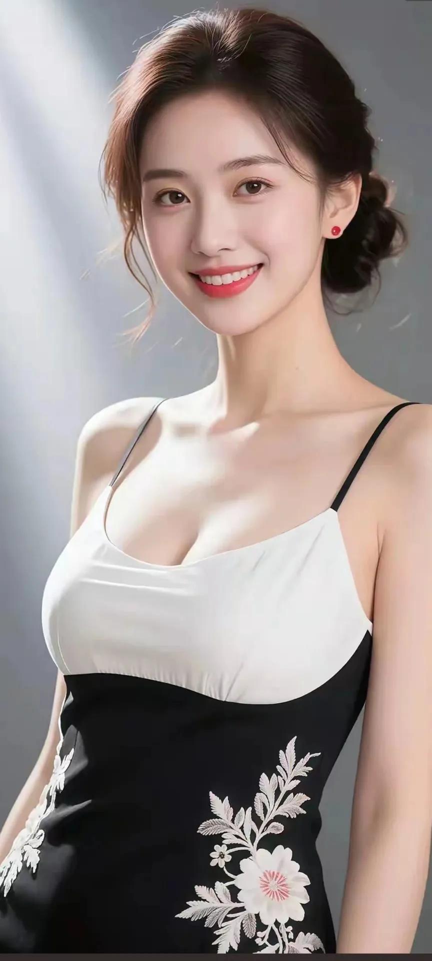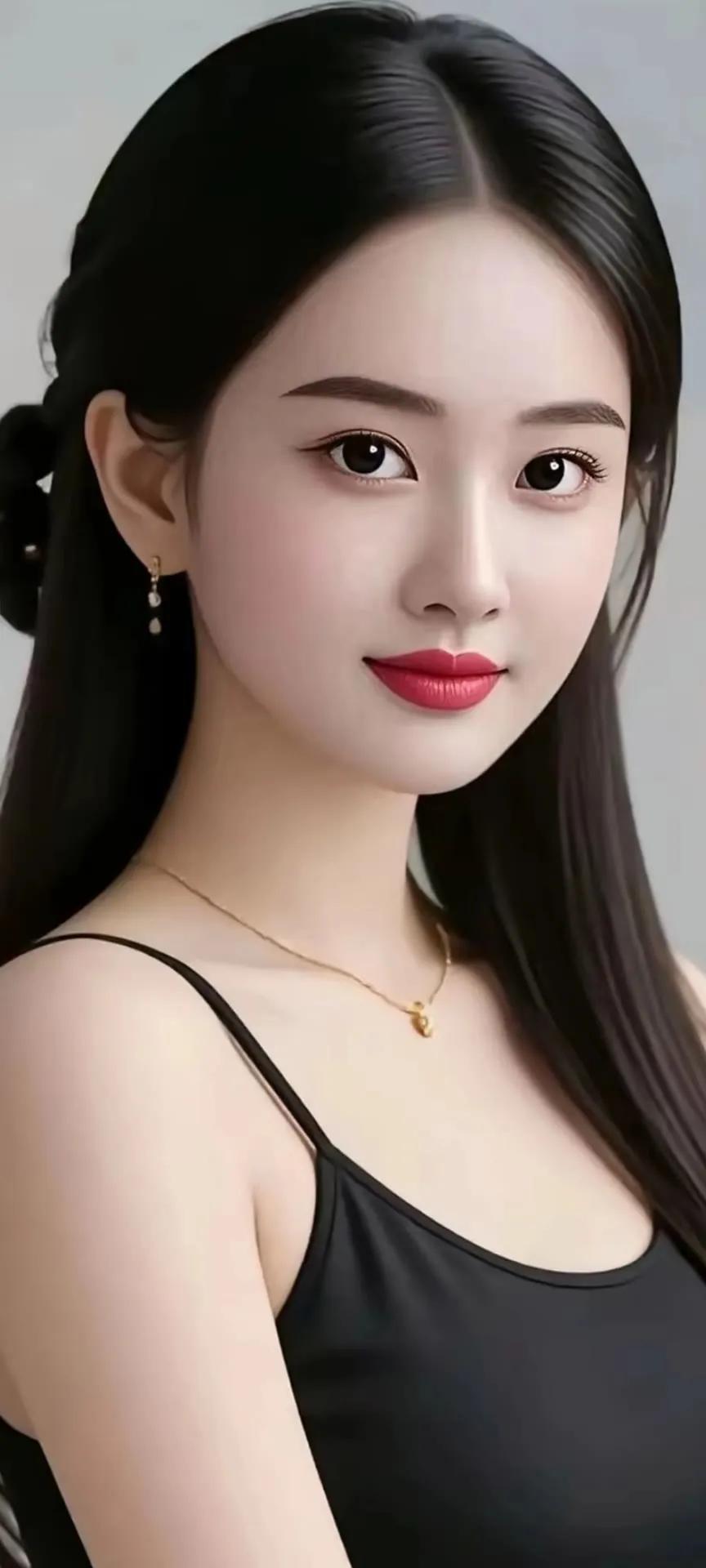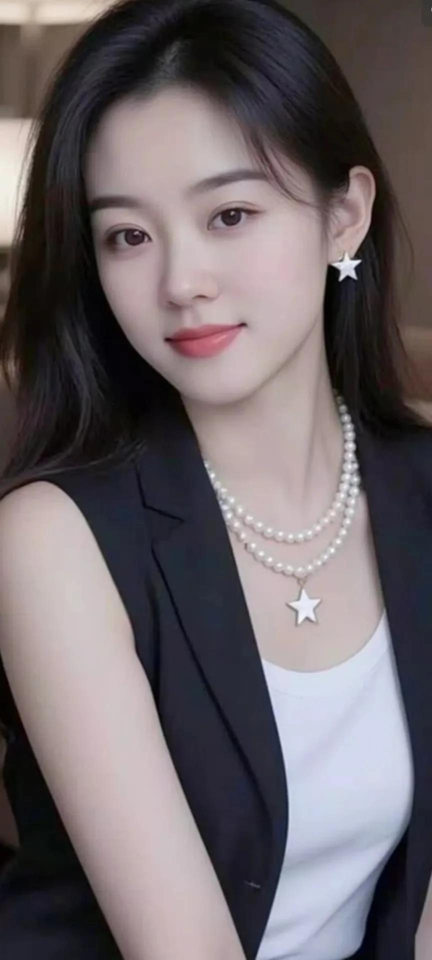 优雅黑发,甜美笑容,简约时尚,气质女神。