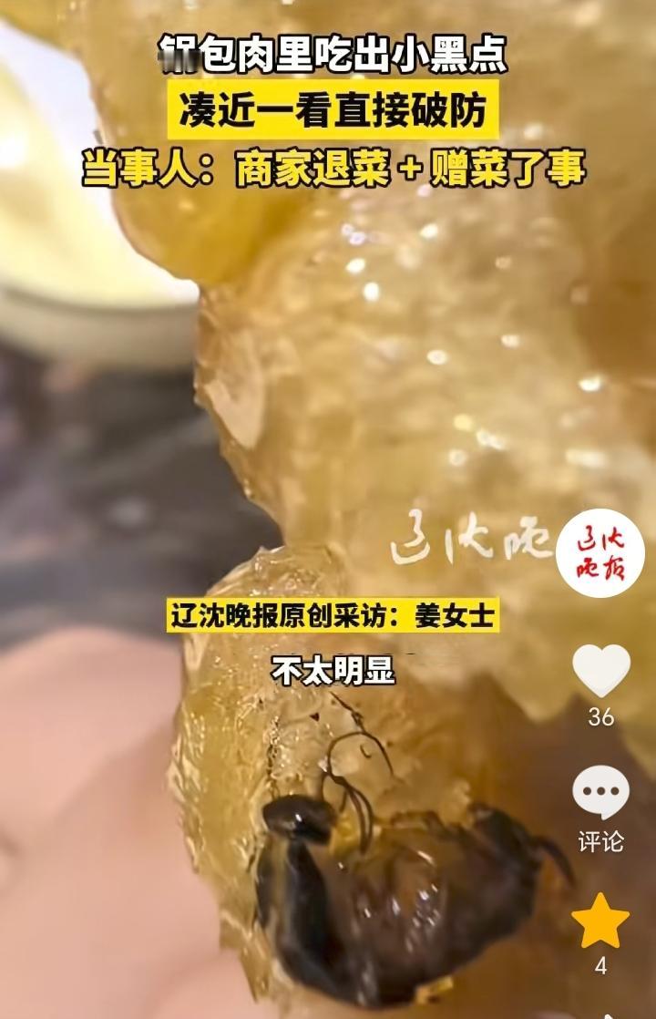出人意料!辽宁丹东,女子去一家餐馆吃饭,点了几个菜,其中有一份锅包肉上菜后女子发现上面有一个黑点,仔细一看发现是一只蟑螂,女子叫来管事人,最终锅包肉给退了,额外又赠送了两个菜。 锅包肉里面吃出了蟑螂,真是让人恶心,原以为女子会直接让免单走人,出人意料的是女子竟然最后接受了退菜赠送菜,这要是换做我,肯定是吃不下去了。 虽然女子没有过多去计较,但是餐馆老板不应该就这样翻篇,因为餐馆卫生关系到顾客们的身体健康问题,容不得半点马虎。 再者,餐馆这次也是遇到了好说话的人,如果遇到不好说话的那就麻烦了。