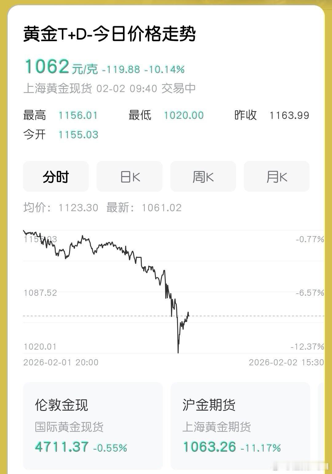 金价 开盘就走弱,从1070下跌到1062!但比预想的要好,希望能触底回弹吧,虽然投的不多但也希望回本呀!