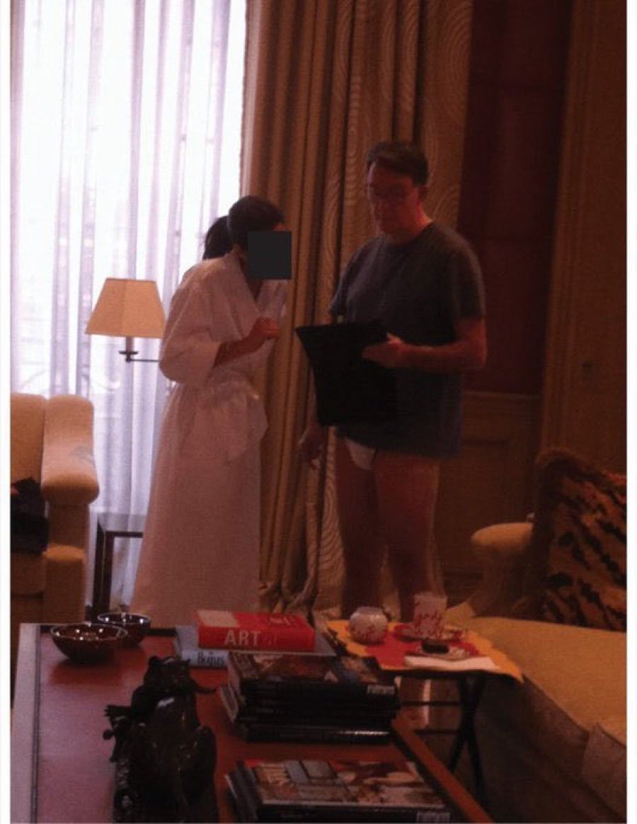 英国网友怀疑图中出现在爱泼斯坦家中,身穿浴袍的女性是英国王妃、哈里王子的妻子梅根·马克尔,而穿着内裤的男人则是前英国驻美大使彼得·曼德尔森。