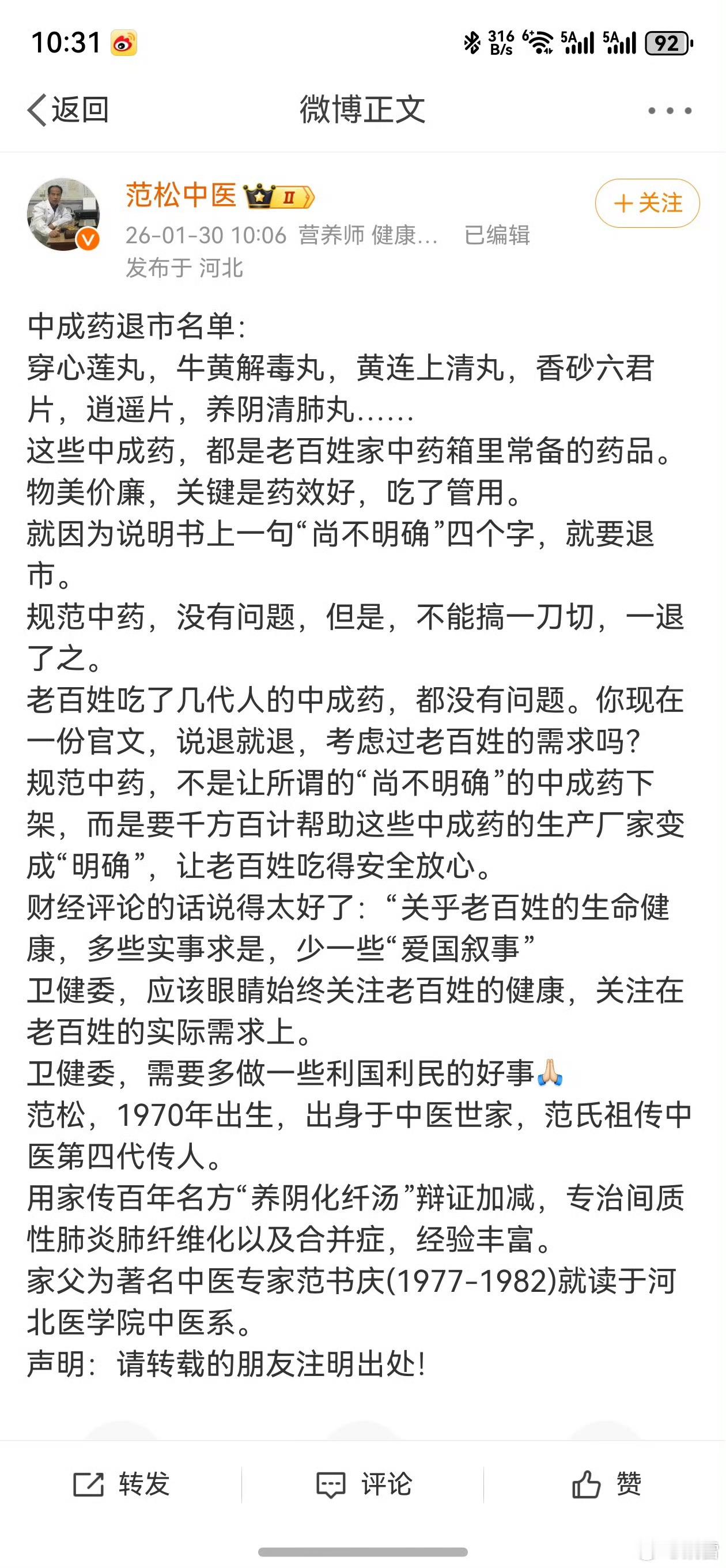 附议中医范松,相信不会一刀切//