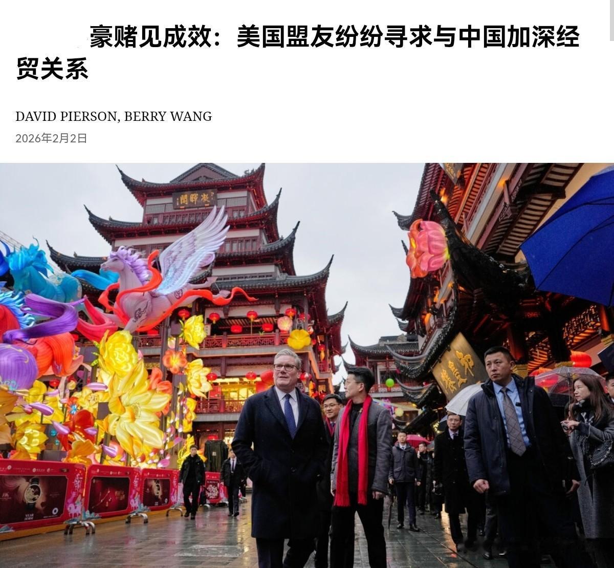 美媒非常不舒服!美媒声称,中国“豪赌”见成效,现在美国的盟友们纷纷寻求与中国加深经贸关系!2月2日,纽约时报刊文表示,去年,特朗普总统用“解放日“关税政策颠覆全球贸易时,中国本可以借此机会发起魅力攻势,赢得那些困惑不安的美国盟友和伙伴。但中国却反其道而行之,北京“威胁”那些敢于配合特朗普政府限制对华贸易的国家。 当中国公布一项“掐断”其关键稀土供应出口的计划时,其目标并不只是美国,而是全世界。北京并没有安抚被美国冷落的盟友,而是选择“加剧”他们的困境,让那些因华盛顿感到不安的国家明白:得罪中国同样会带来经济上的损失。如今,这一赌注似乎正在见效。现在发生的景象是,欧洲国家排队前往中国,欧洲国家也越来越不提及人权,贸易失衡,间谍等问题。 美媒表示,你可以说中国的实力赢得了尊重,中国的立场赢得了尊重。但需要提醒中国的是,欧洲国家这纯粹是一种短期的战术性补救措施,而不是西方向中国的战略转向。对于美媒的这一论调,我们怎么看呢?很显然,在美媒看来,中国是“赌赢”了,但美媒也想警告,我们不要对欧洲国家的接近,太过于乐观。显然,美媒扭扭捏捏的承认现在局势对我们有利,但是美媒明显不太愿意接受,我们并非赌博,而是我们高度理性作出了正确的决策。 美媒似乎完全不理解一点,那就是国与国之间打交道是建立在平等,尊重的基础上的。如果欧洲国家配合美国对付我们,我们当然要进行反制。如果美国冷落欧洲,欧洲却还要配合美国对付我们,这样的欧洲,有什么样拉拢的价值?再者,所谓的我们使用稀土威胁全球,更是荒谬。对关键原材料进行管制,是国际通例。损害我们的利益,得罪我们,当然要付出代价。事实上,不仅欧洲要明白这一点,美国也要明白这一点。当然,现在美国肯定也明白了。 美国自己追求私利,以至于盟友们离心离德。现在美国的盟友们纷纷的调整政策,改善对华关系,美国看见这样的变化,当然心里面不是滋味。不过,裂痕已经公开化,即便美国以后改弦更张,美国想要与盟友的关系和好如初,已经是不可能。这些盟友们也许出于权宜之计,但是单方面依赖美国是危险的,这日益成为共识。而这一点,恐怕美国自己也不得不面对。