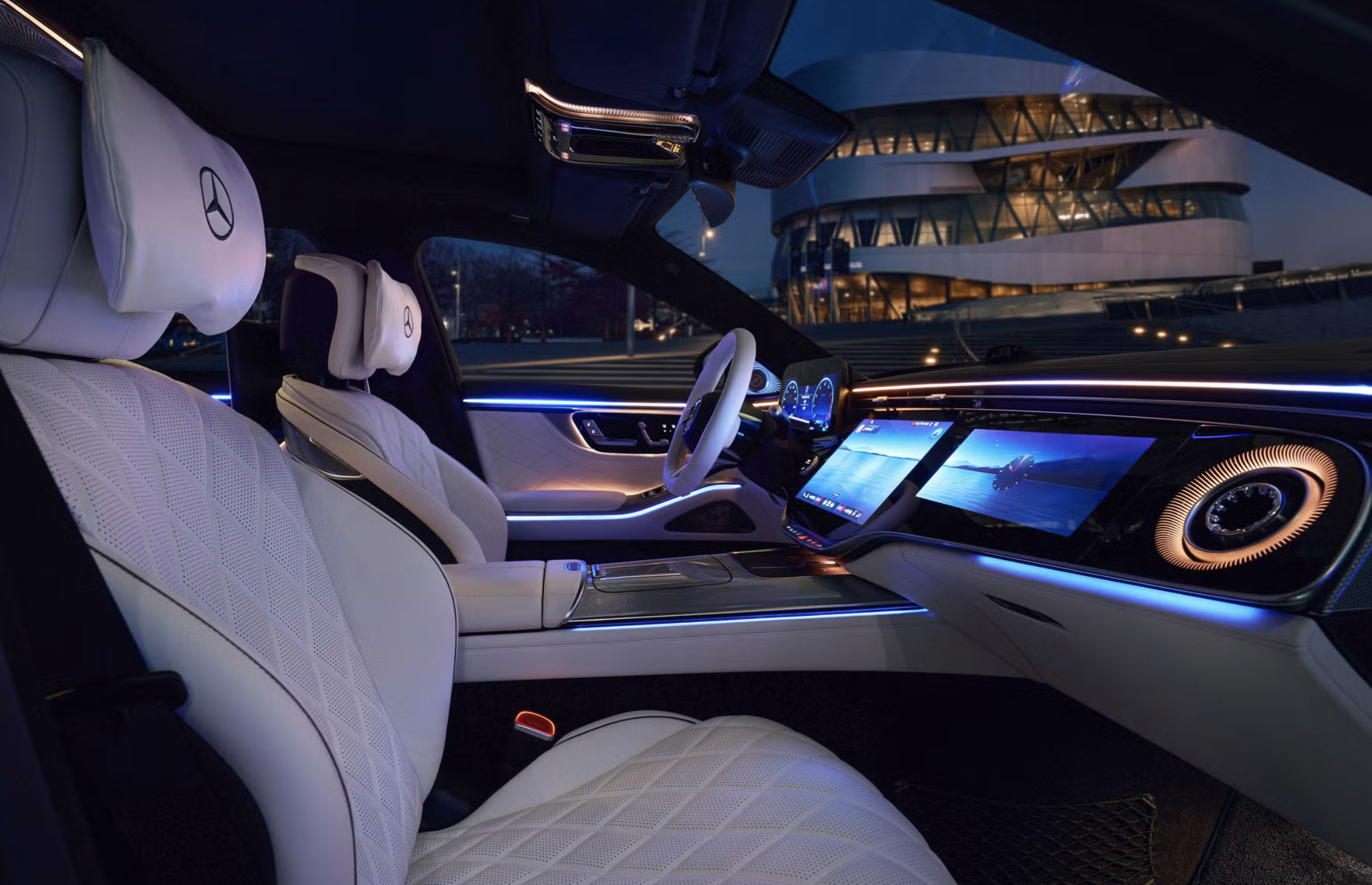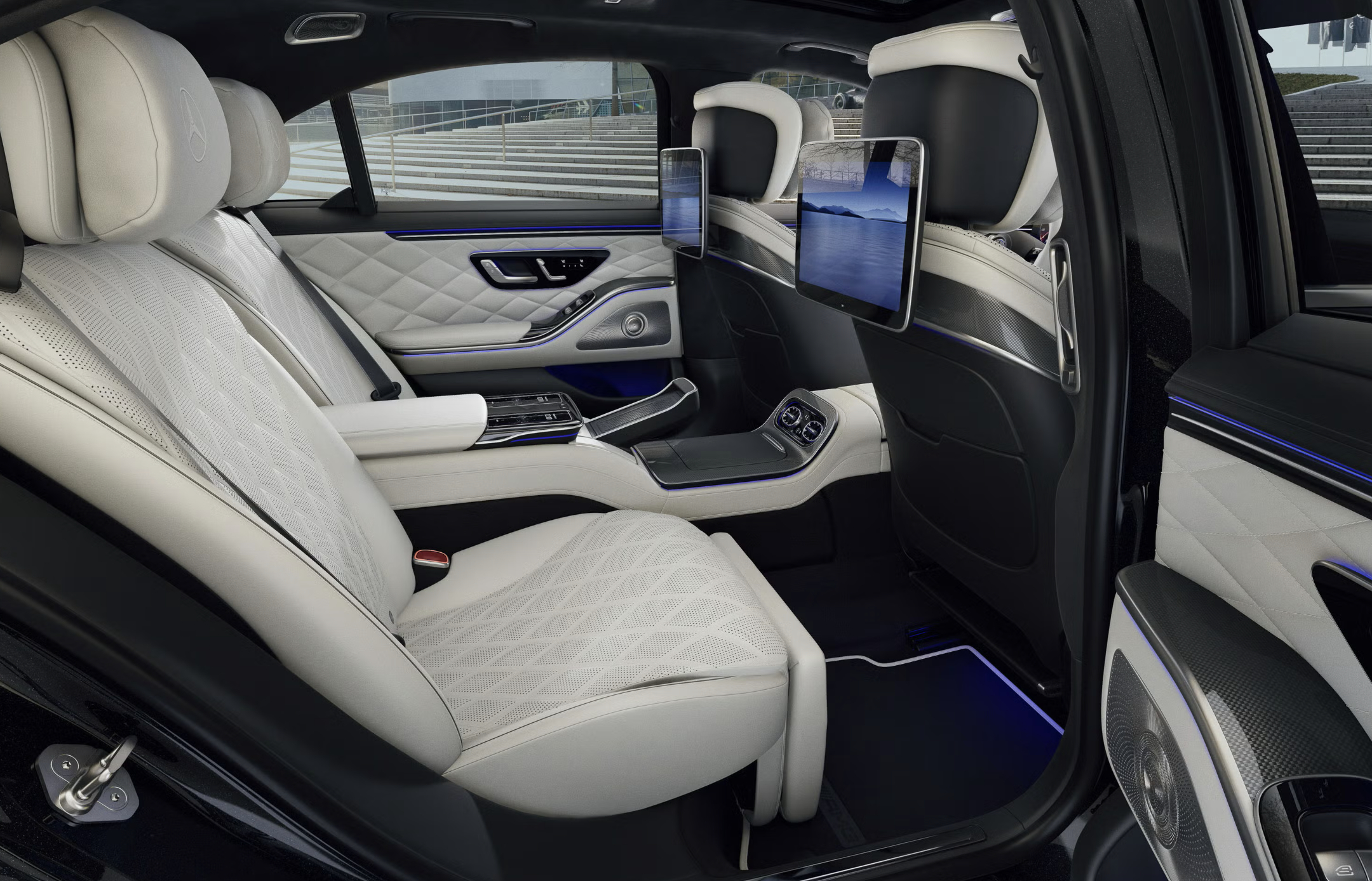 迎宾仪式升级:车门踏板灯可将 “Mercedes-Benz” 字样投射至地面。