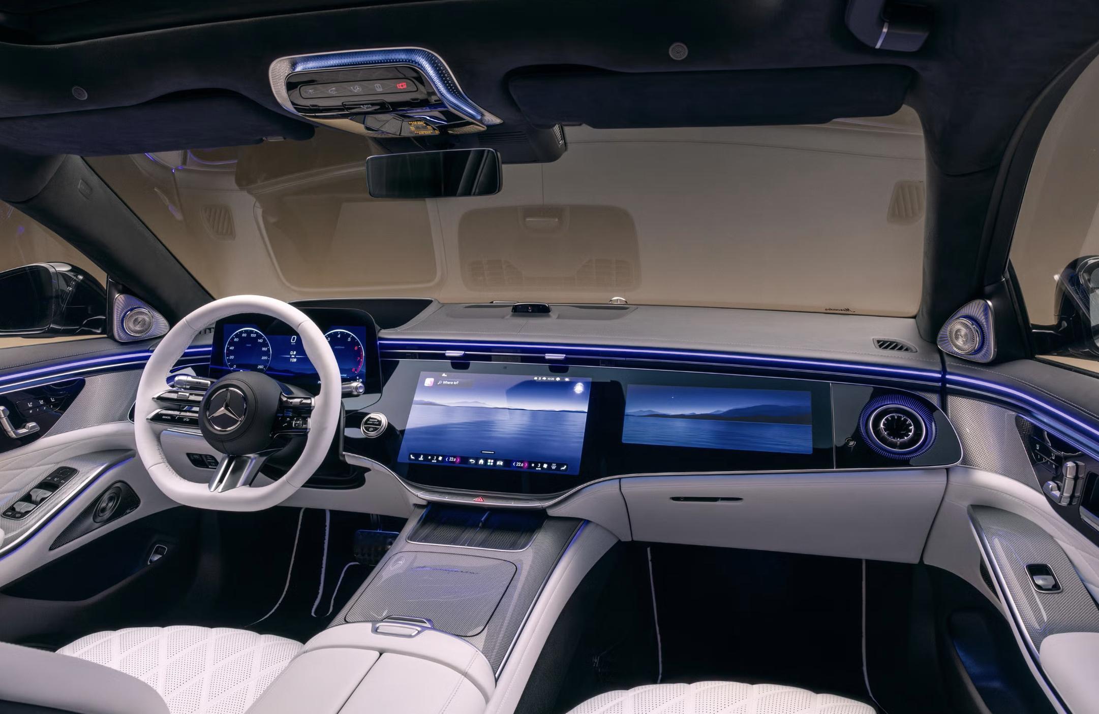 内饰方面,S 级用上了“三屏”Superscreen——