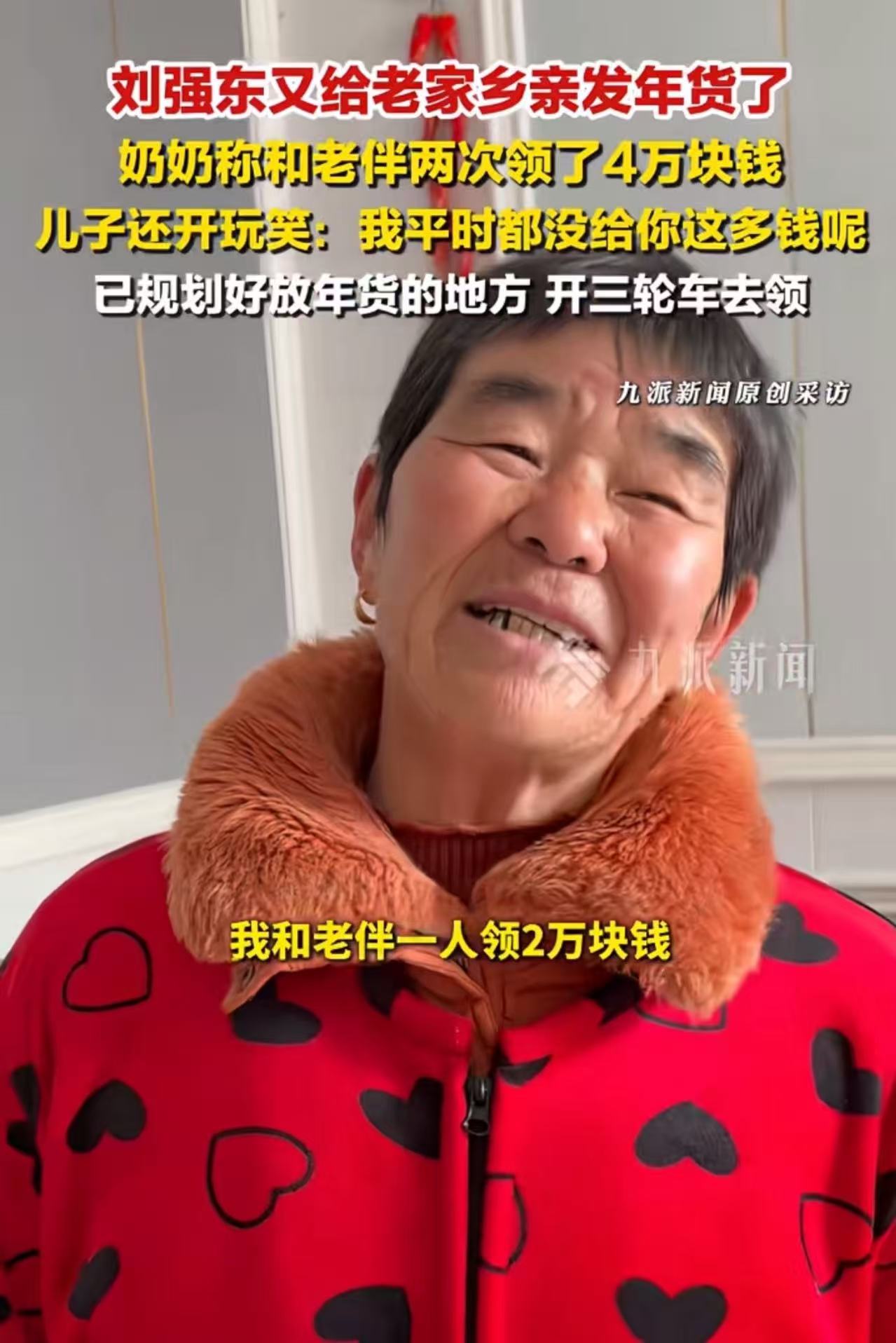 这才是真正的“富而不忘本”!刘强东又给老家乡亲发年货了,一个老奶奶说:“我和老伴两个人领了4万块钱,儿子平时都没给我们这么多钱呢!”网友:这才是实实在在的扶持!假如有一天刘总有困难发不起年货希望乡亲们能理解!
